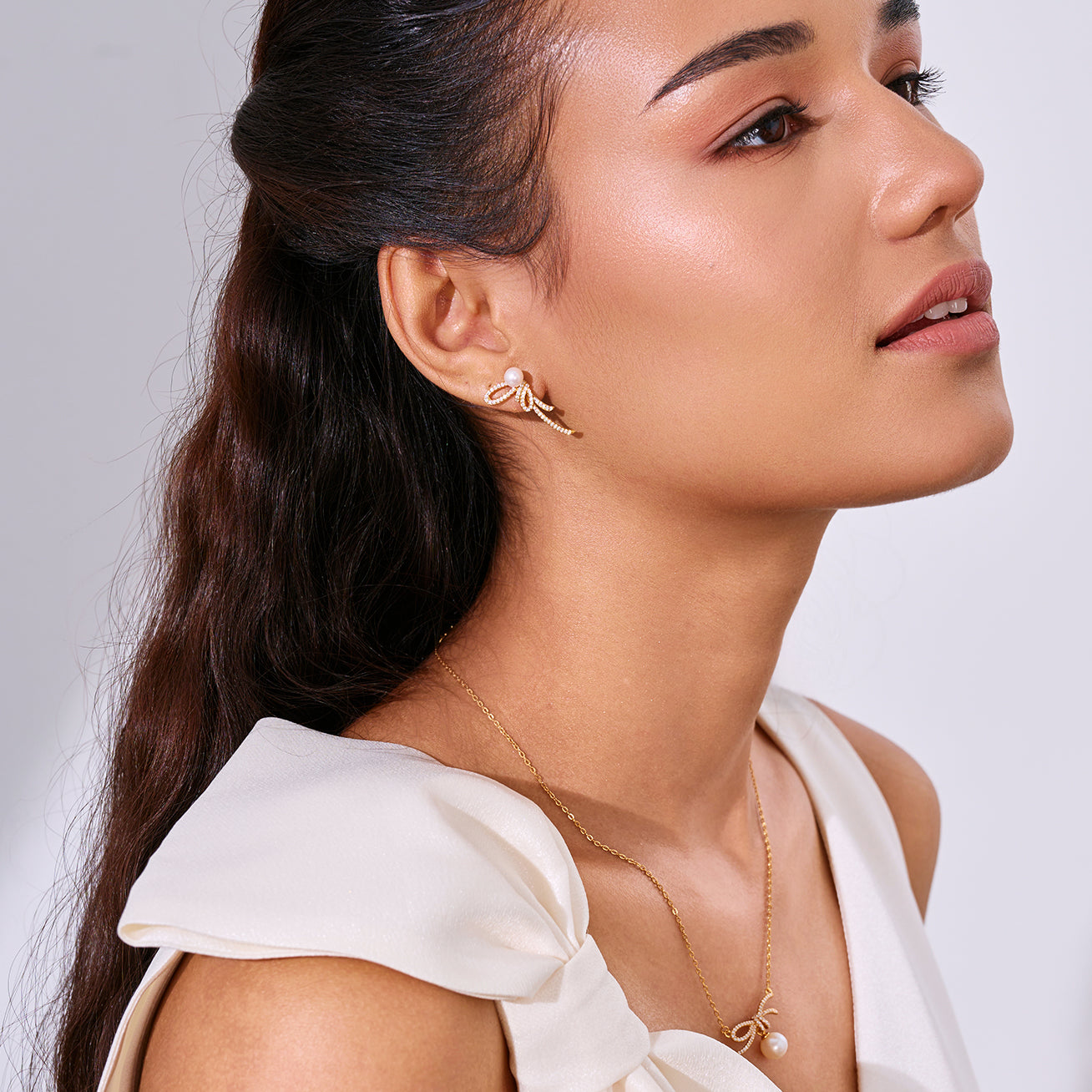 Sublimez votre look de fête ou de mariage avec ces boucles d'oreilles au design ruban élégant — alliant parfaitement sophistication et charme pour la célébrante moderne.