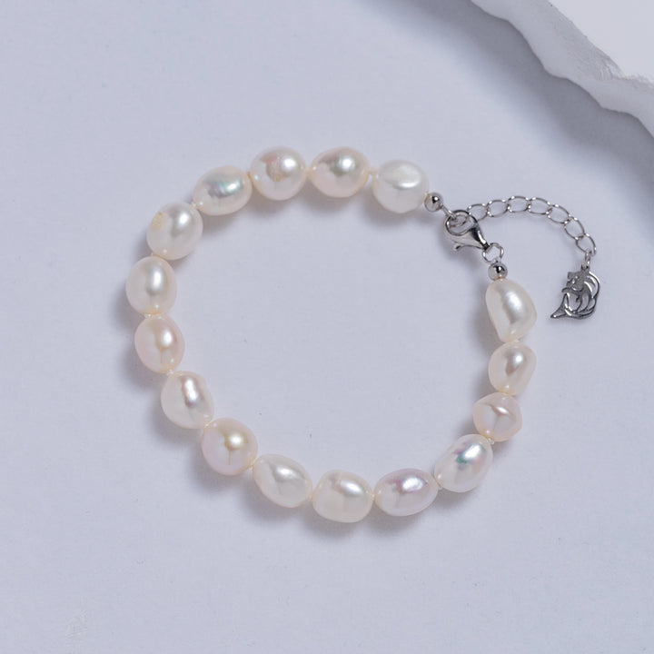 Un bracelet audacieux en perles baroque 7 à 8 mm, qui rayonne de style et est d'une beauté captivante - Débloquez votre propre look d'été confiant mais subtil en le superposant avec votre bracelet préféré.