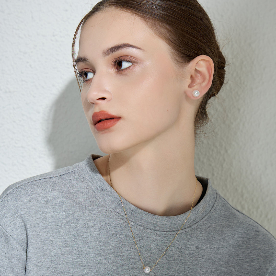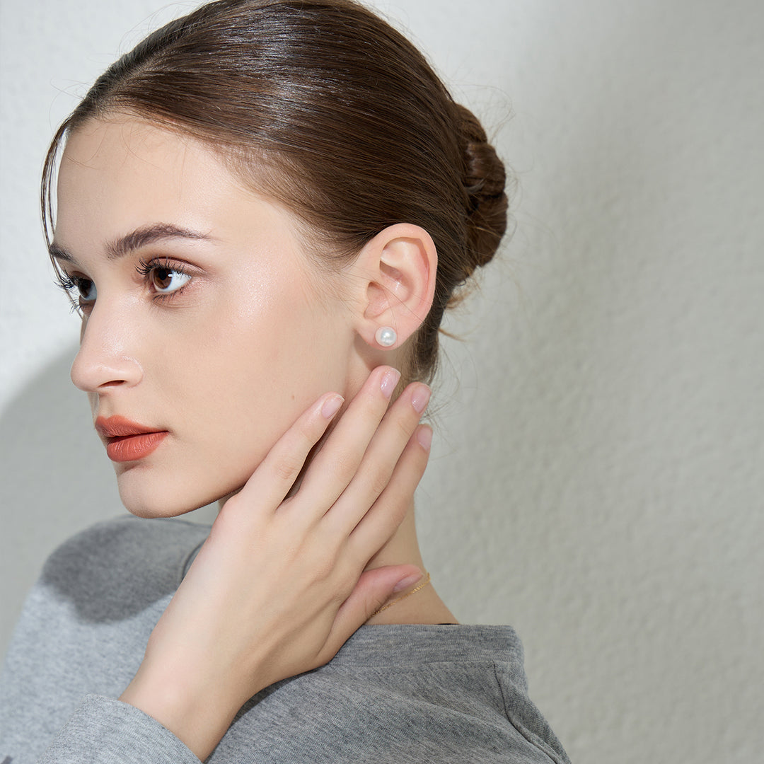 Elegant Freshwater White Round Pearl Stud Earrings WE00127 - PEARLY LUSTRE