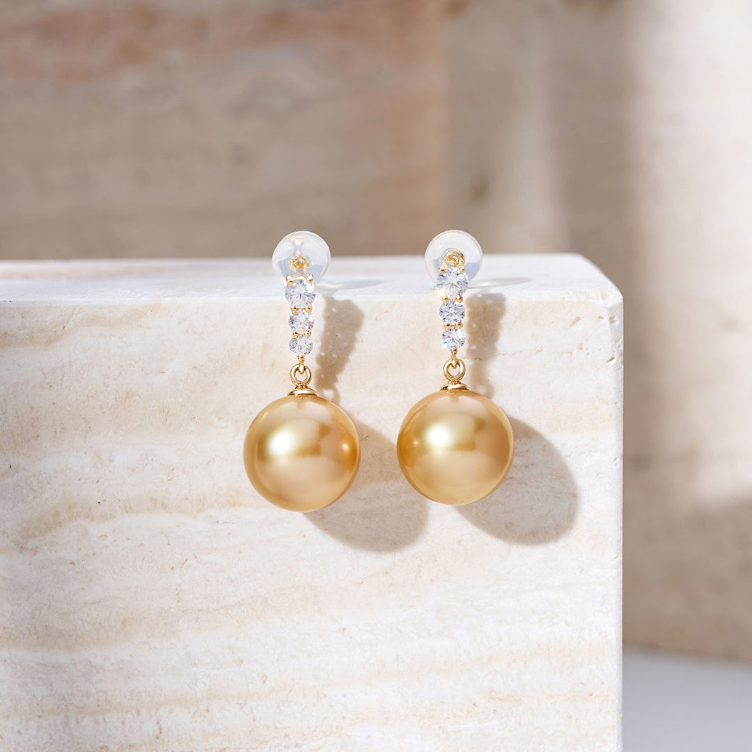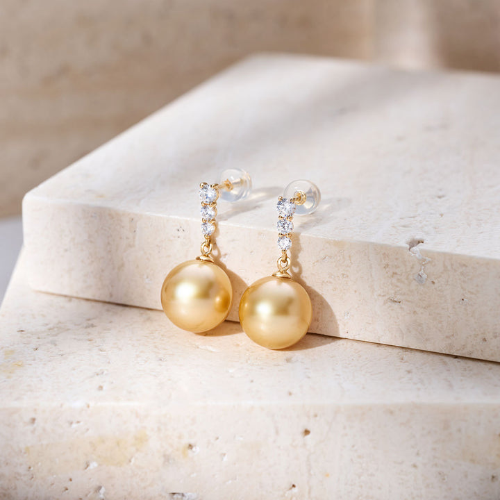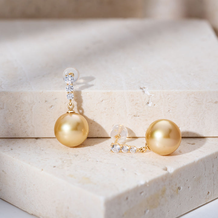 Boucles d'oreilles puces en perle dorée de la mer du Sud en or massif 18K KE00292