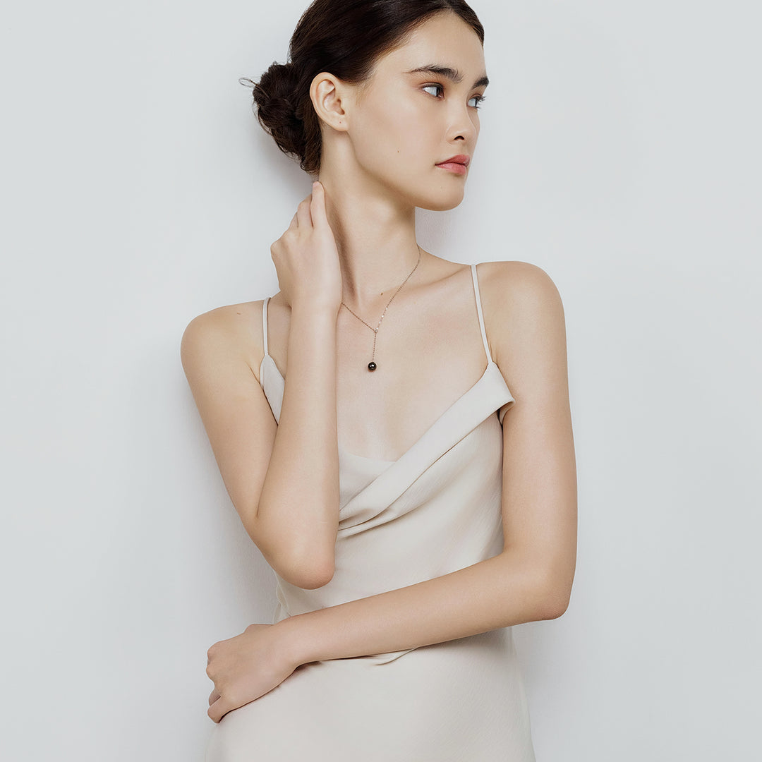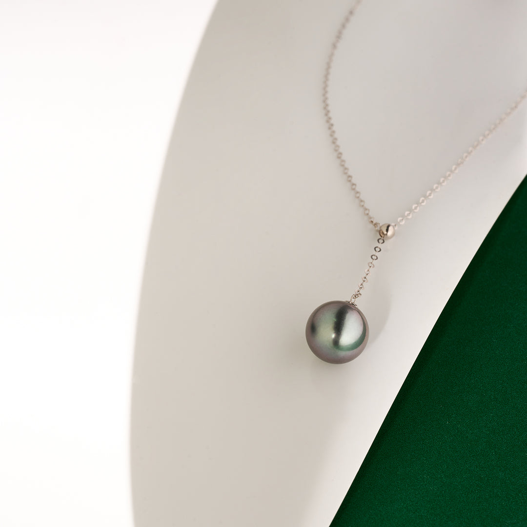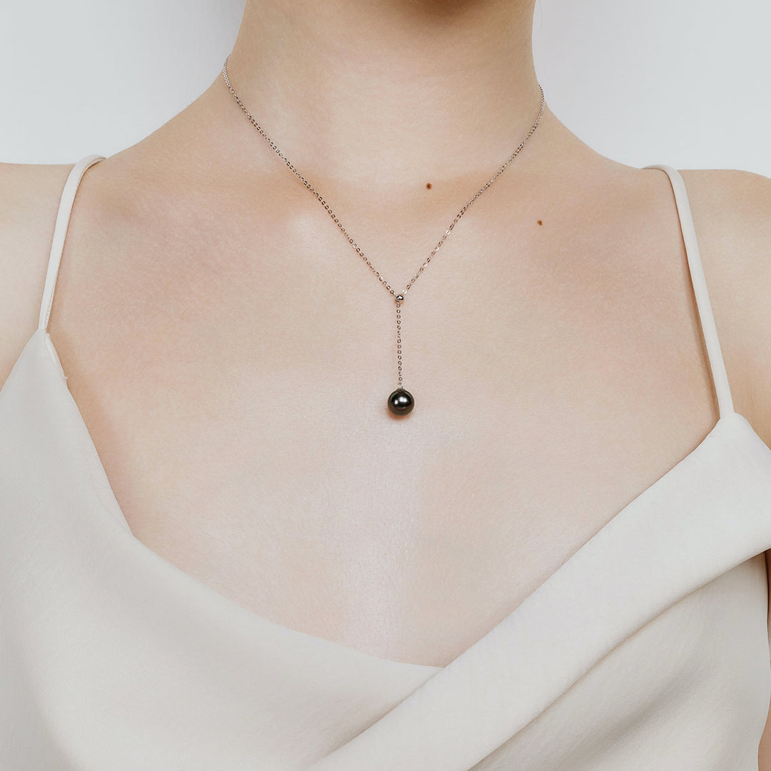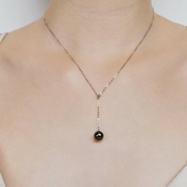 Le lasso collier en perles éblouit avec un stoppeur ajustable et une précieuse Perle de Tahiti pour une sophistication intemporelle.