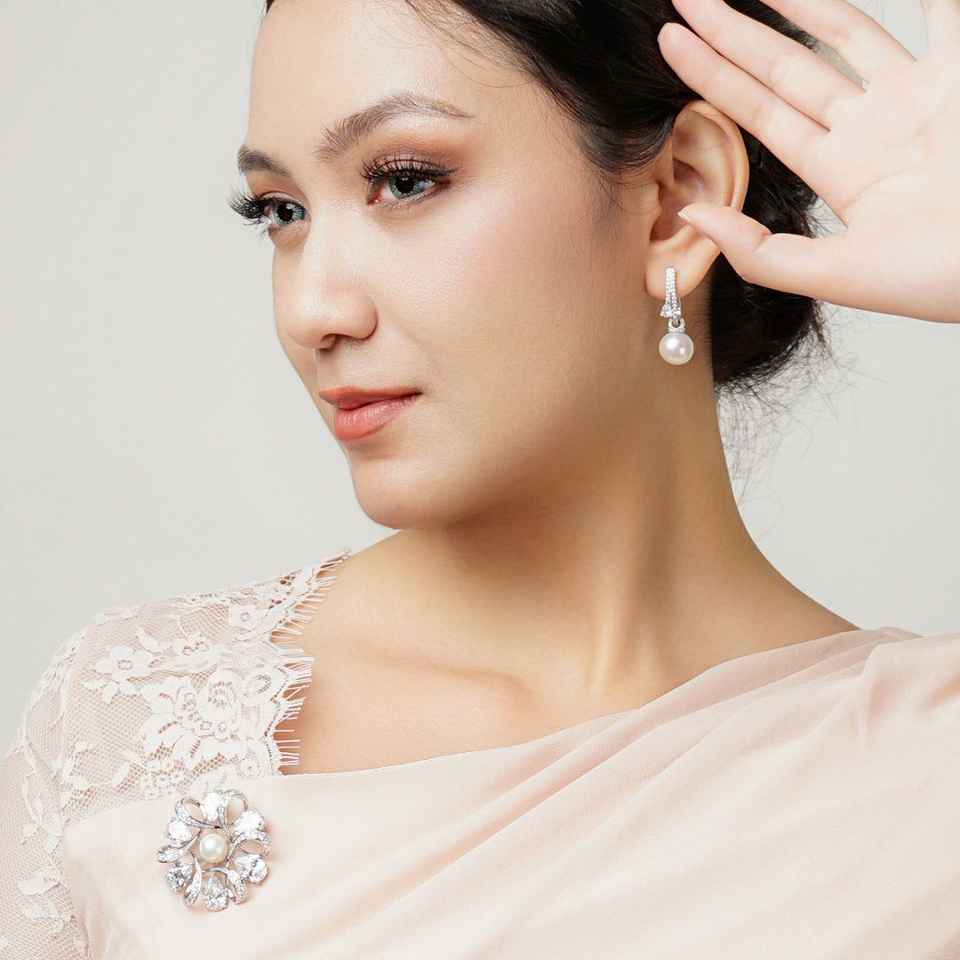 Avec une seule perle tenue dans un royaume exquis de Zircon cubique argenté.