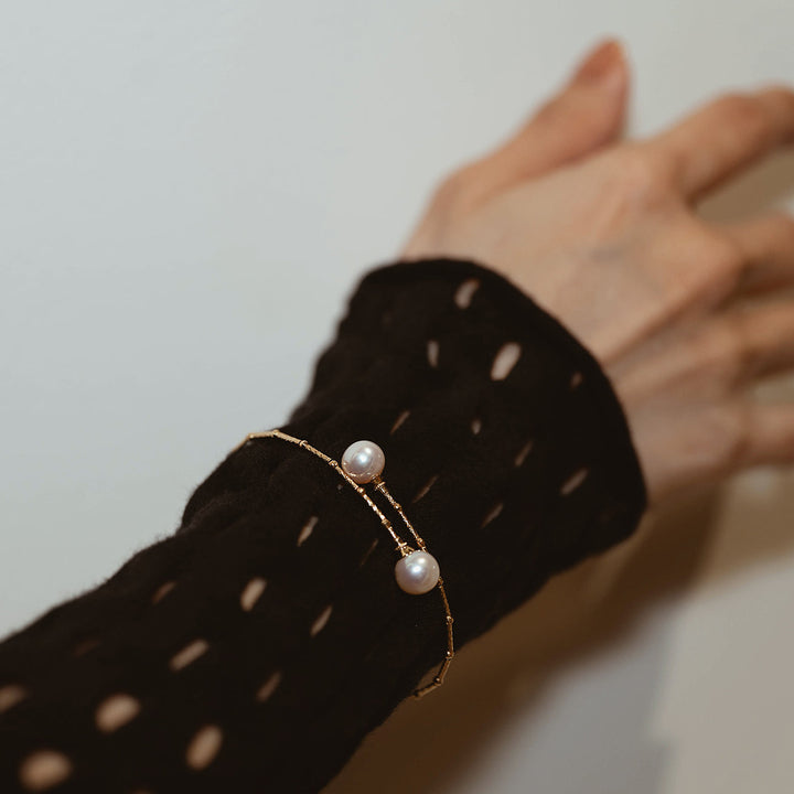 18K Solid Gold Freshwater Pearl Bracelet KB00002 - PEARLY LUSTRE