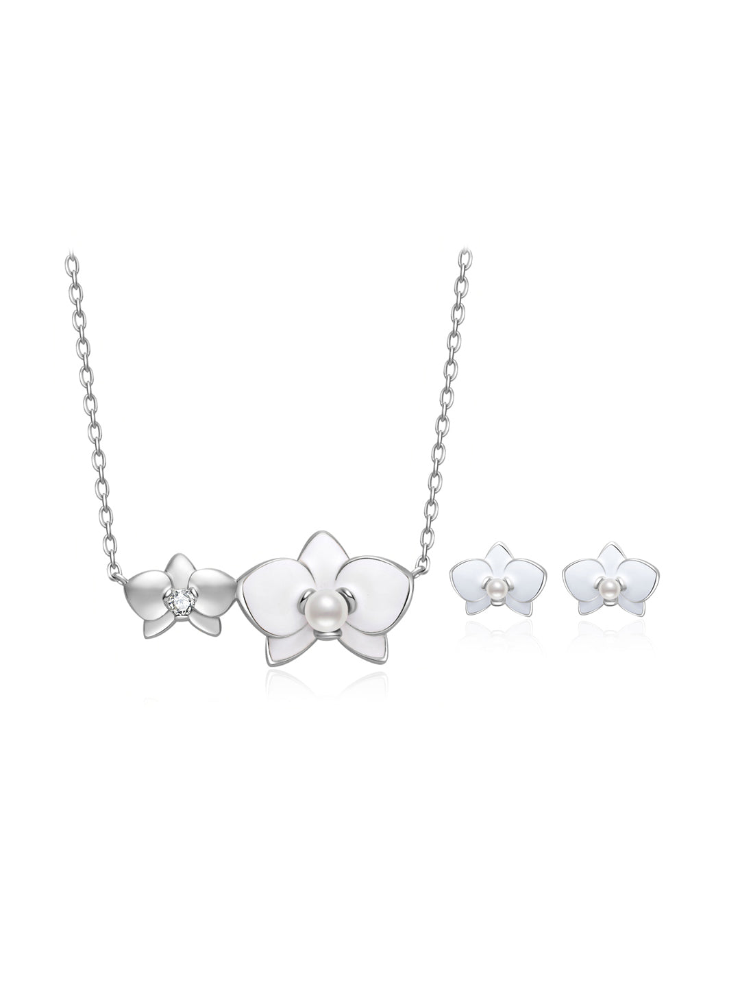 De délicates boucles d'oreilles en perles d'orchidée rencontrent la beauté intemporelle d'un collier de perles d'eau douce — une alliance élégante qui incarne la féminité, l'allure et le charme naturel. Parfait pour les occasions spéciales ou une élégance raffinée au quotidien.