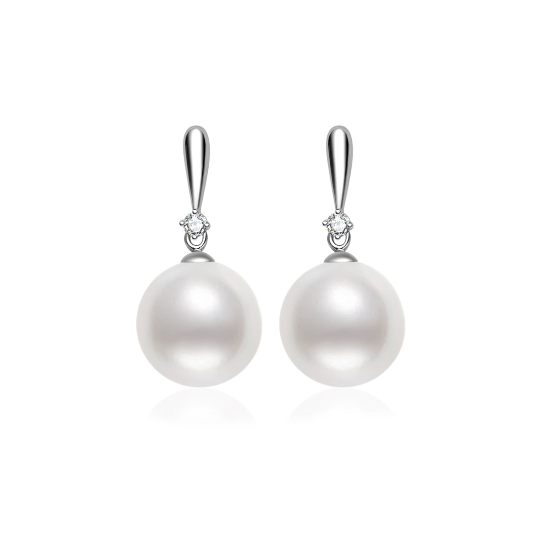 Boucle d'oreille en perle blanche australienne en or massif 18 carats KE00302