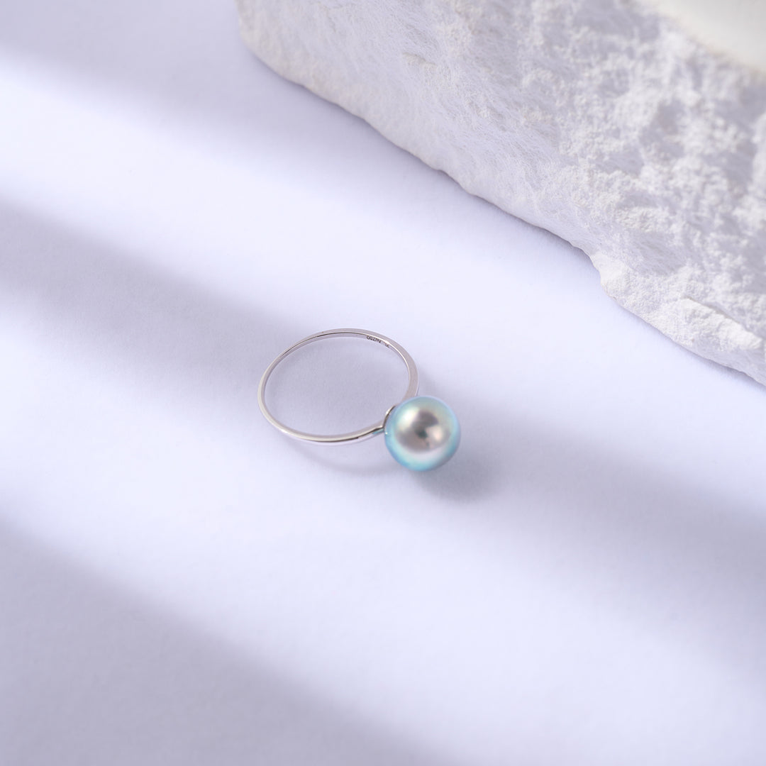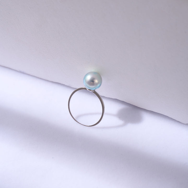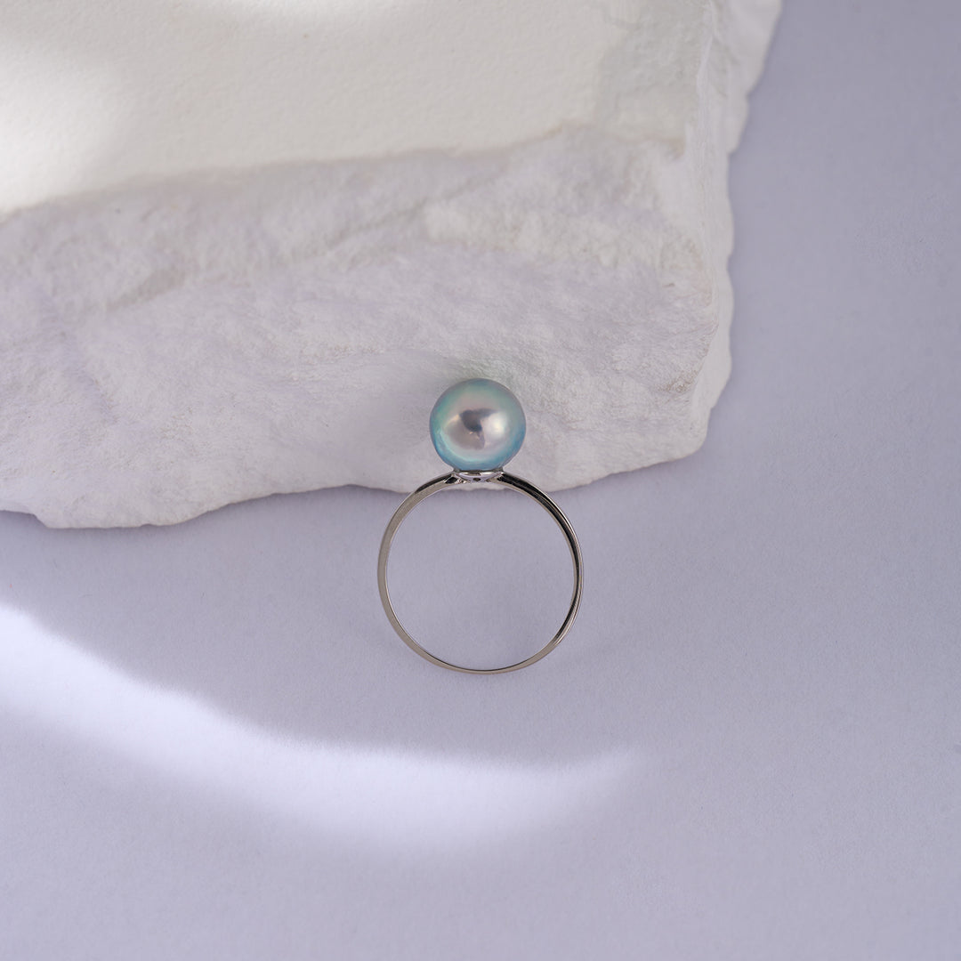 18K Gold Silver Blue Akoya Pearl Ring KR00105 - PEARLY LUSTRE