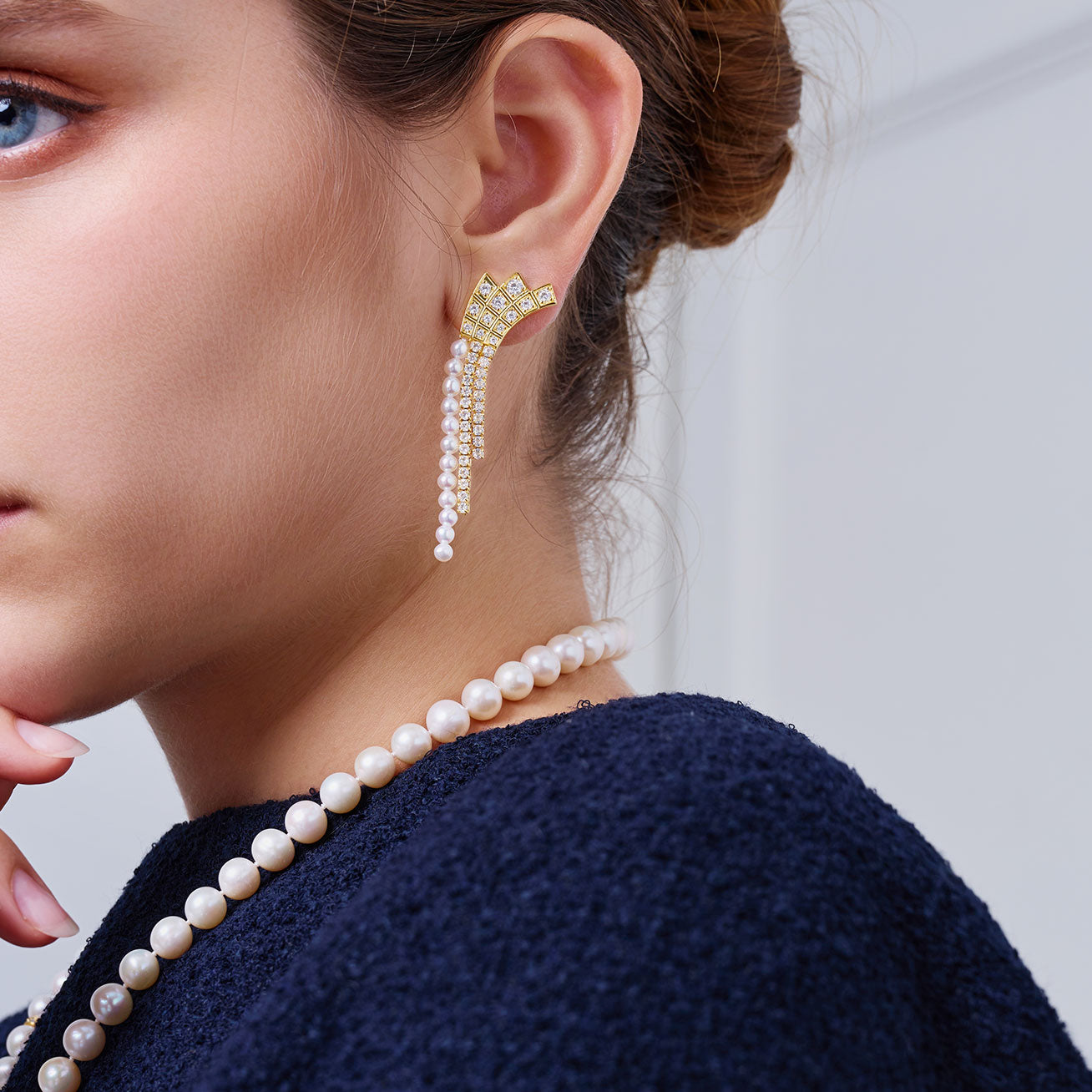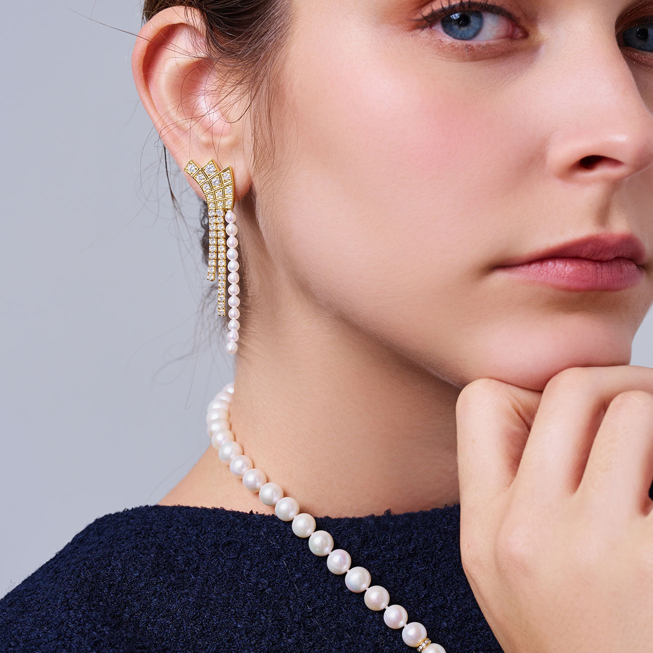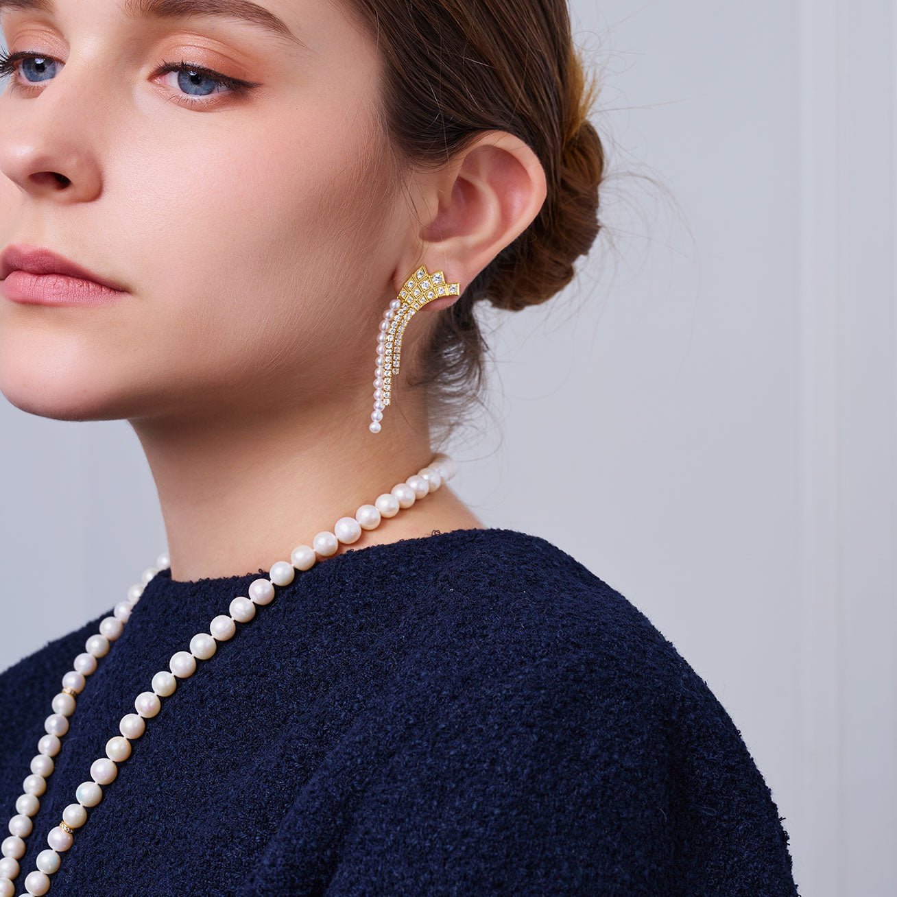 Top Grade Freshwater Pearl Earring WE00912 | WATERFALL - PEARLY LUSTRE
