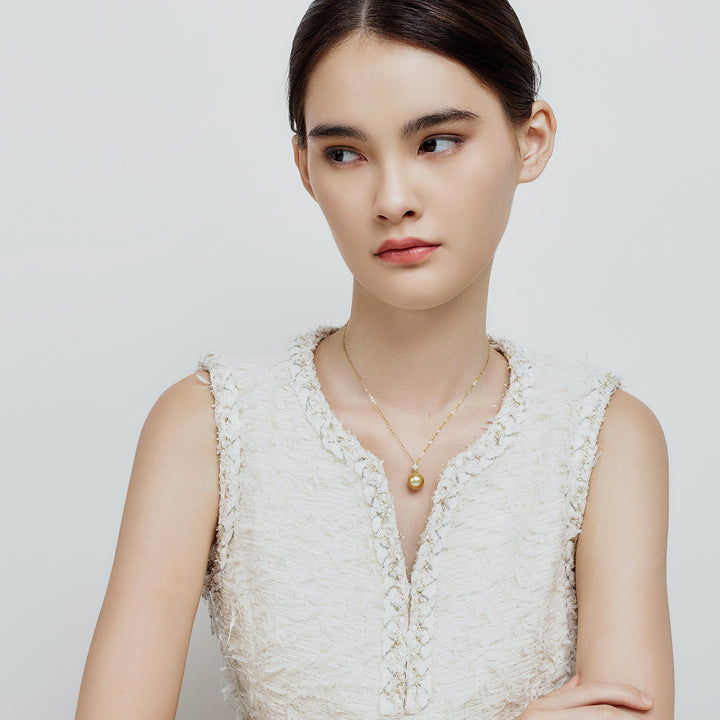 18K Solid Gold South Sea Golden Pearl Necklace KN00251 - PEARLY LUSTRE