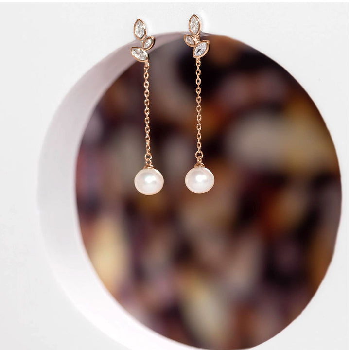 Même les feuilles tombent amoureuses de vous, incarnez la beauté de la nature dans ces boucles d'oreilles en perles d'eau douce et en zircone cubique. Imaginez les perles qui pendent à votre oreille comme les feuilles qui tombent en automne.