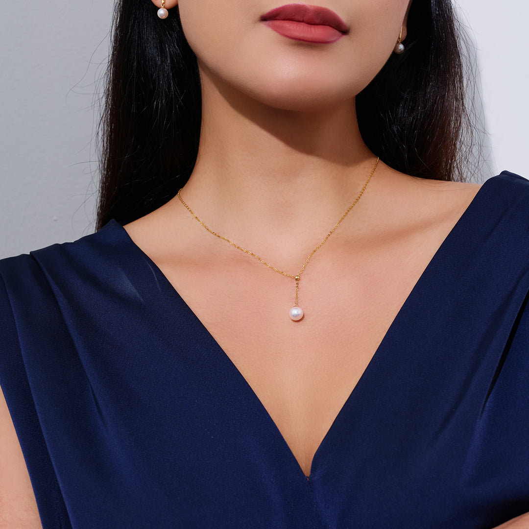 Elegant Freshwater Pearl 18K Solid Gold Necklace KN00008 - PEARLY LUSTRE
