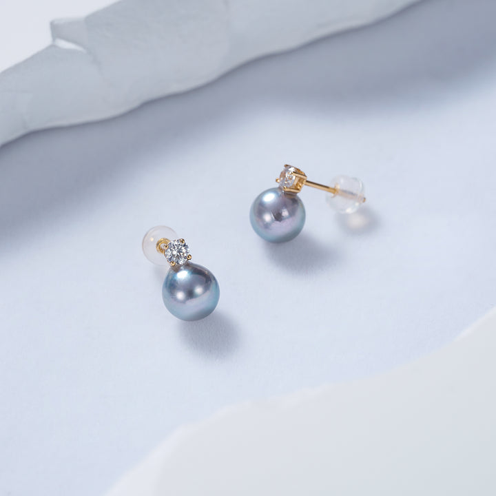 Top Lustre 18K Gold Silver Blue Akoya Pearl Earrings KE00153 - PEARLY LUSTRE