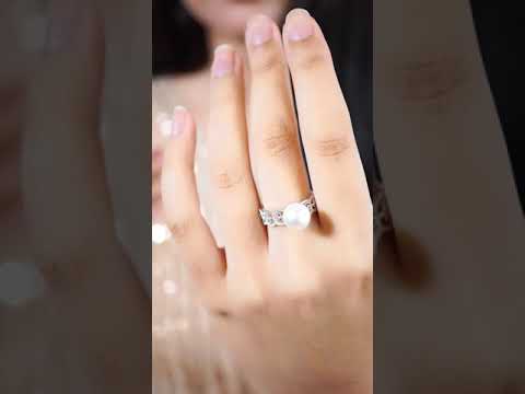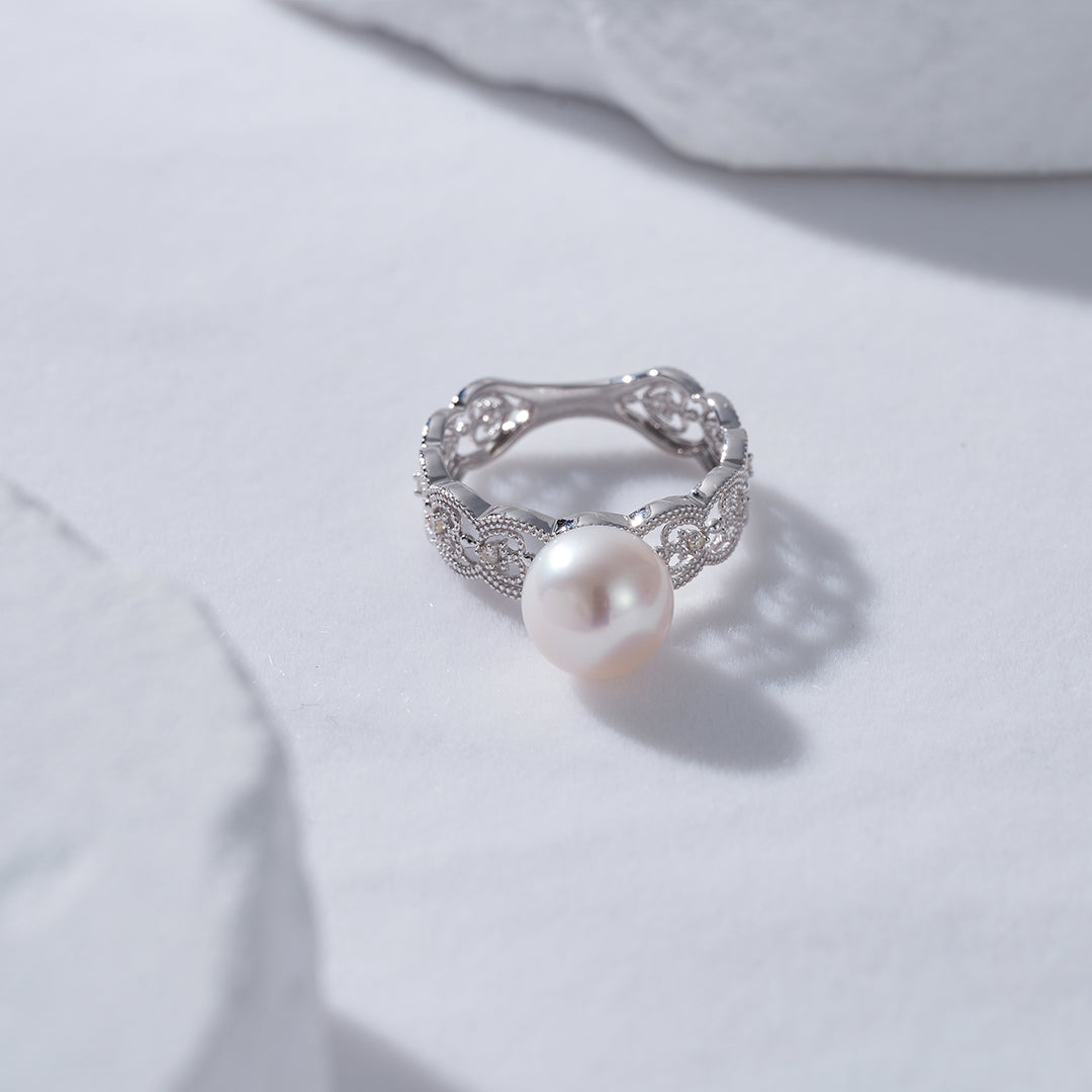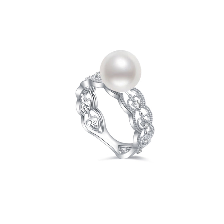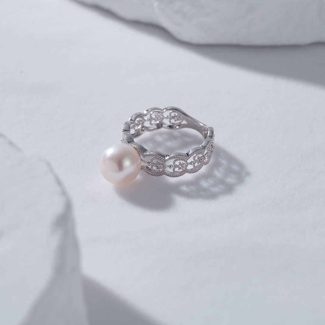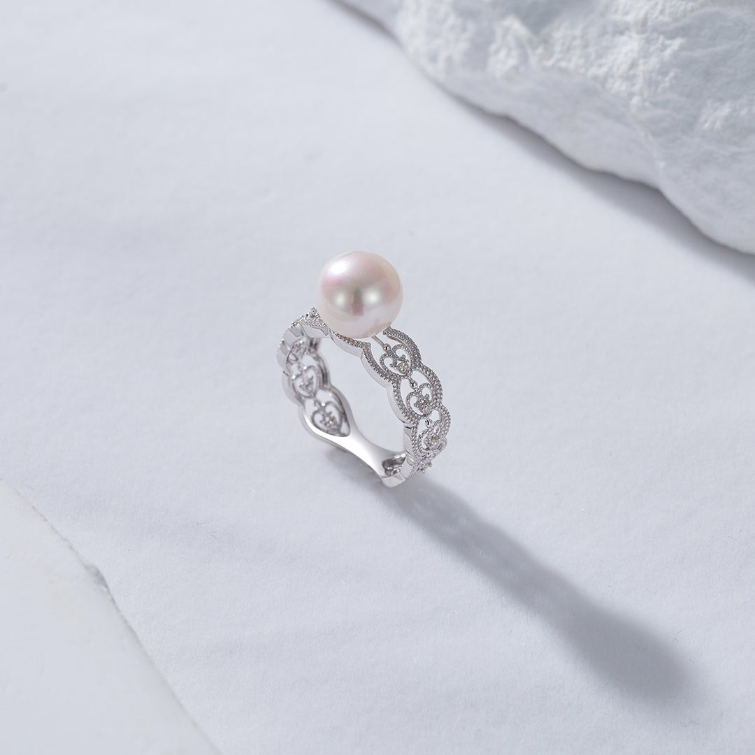 Elegant 18K Solid Gold Diamond Freshwater Pearl Ring KR00047 - PEARLY LUSTRE