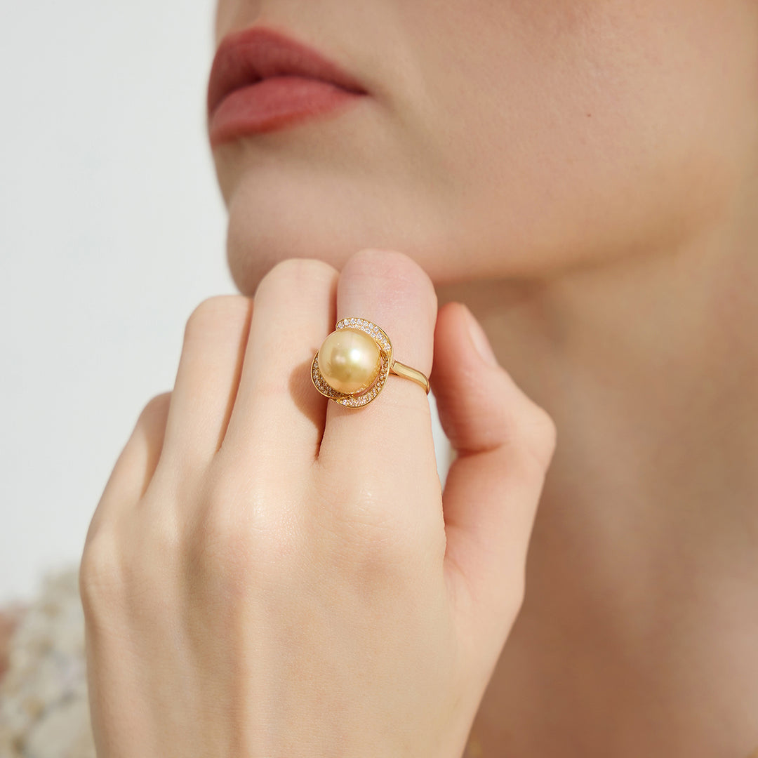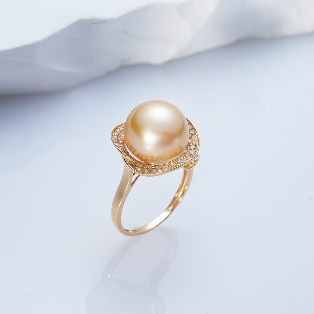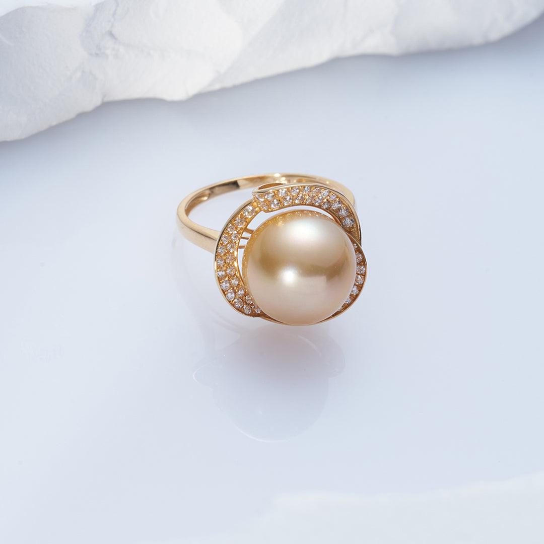 18K Solid Gold South Sea Golden Pearl Ring KR00091 - PEARLY LUSTRE