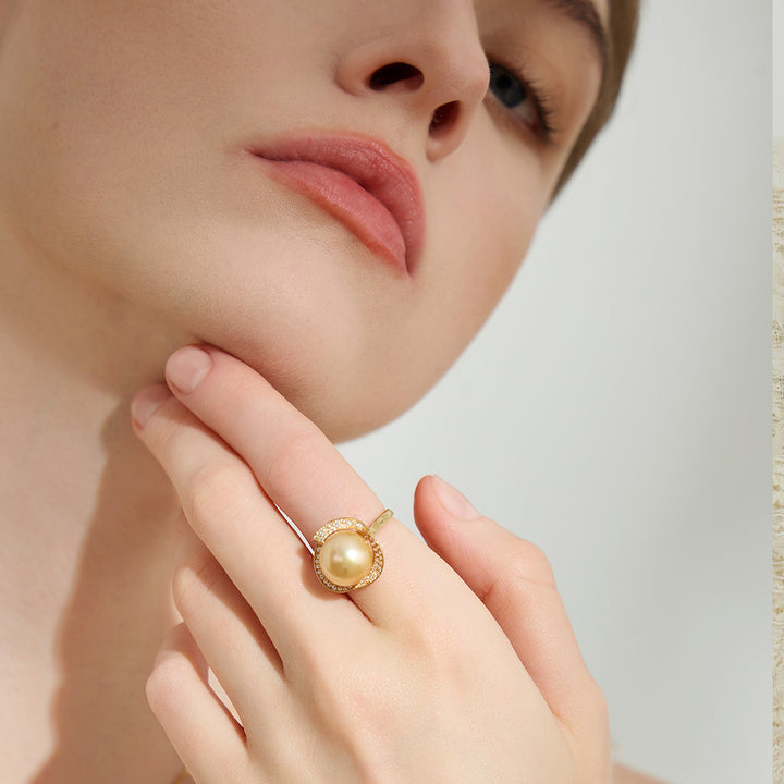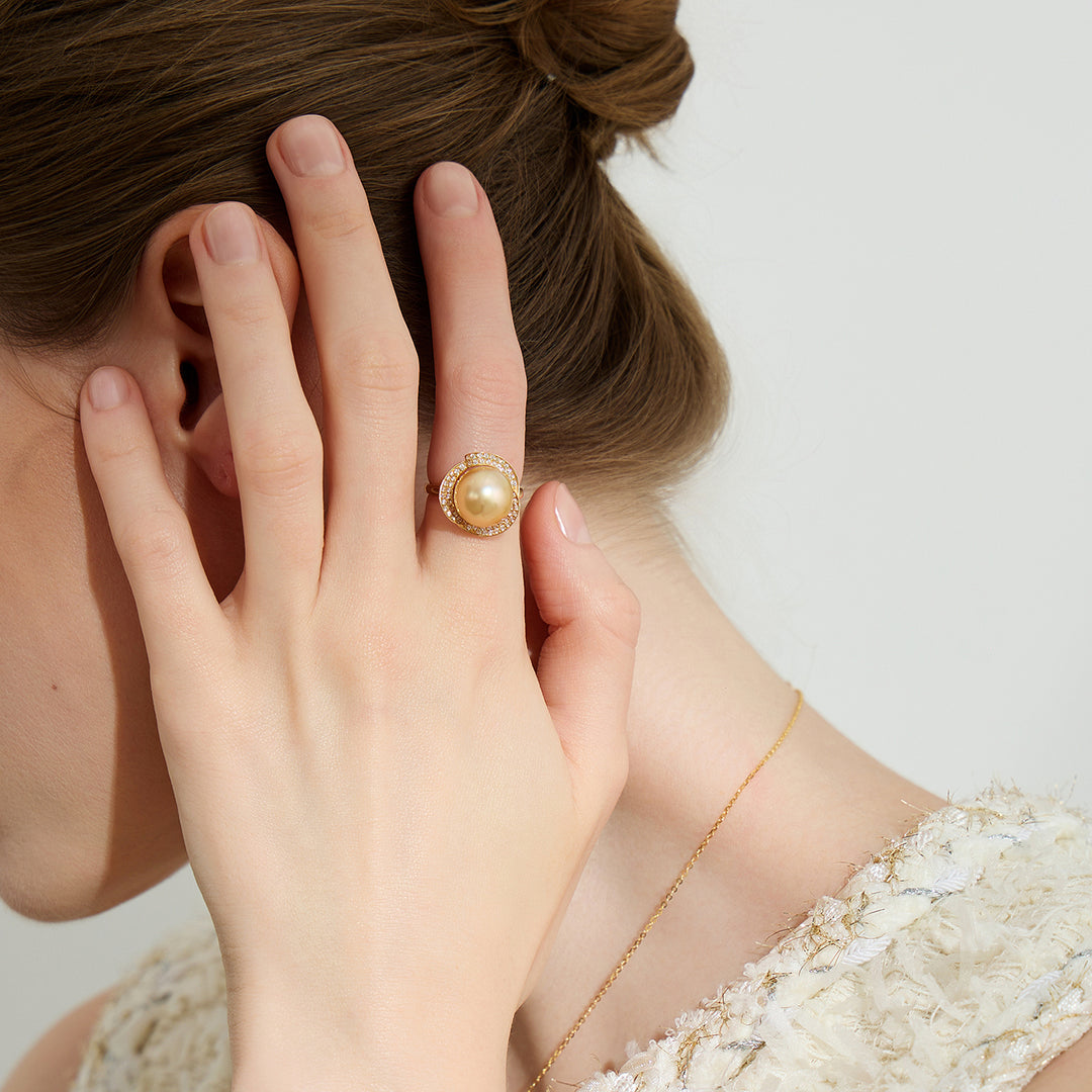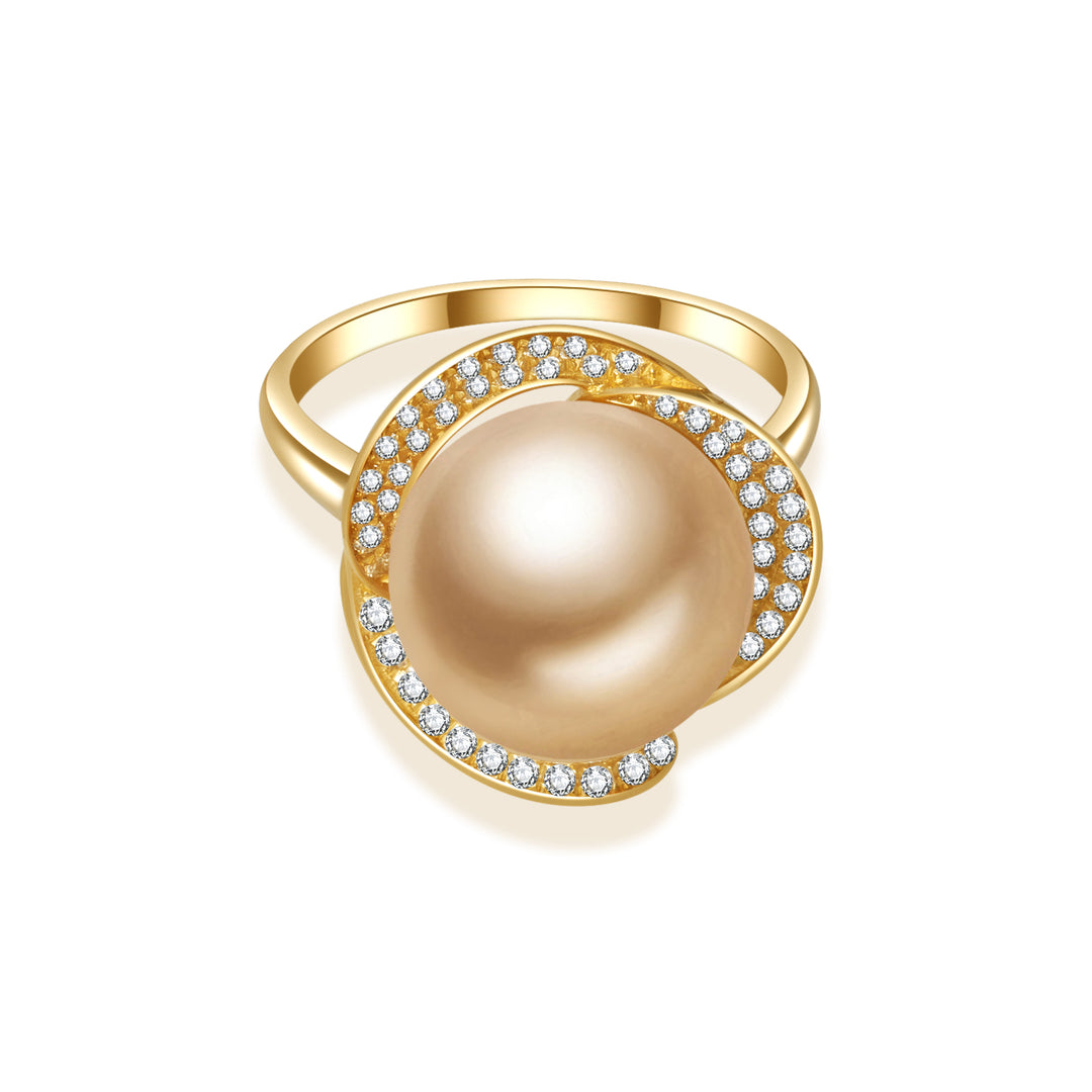 18K Solid Gold South Sea Golden Pearl Ring KR00091 - PEARLY LUSTRE