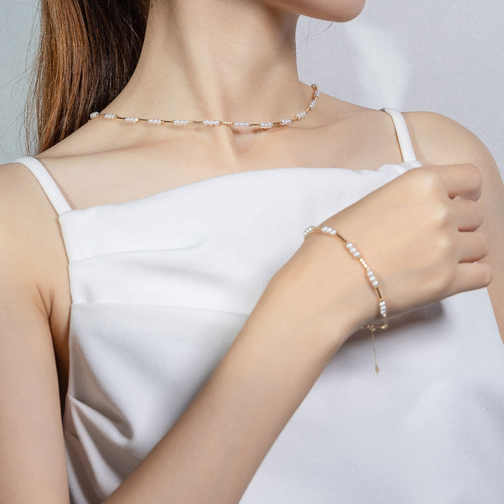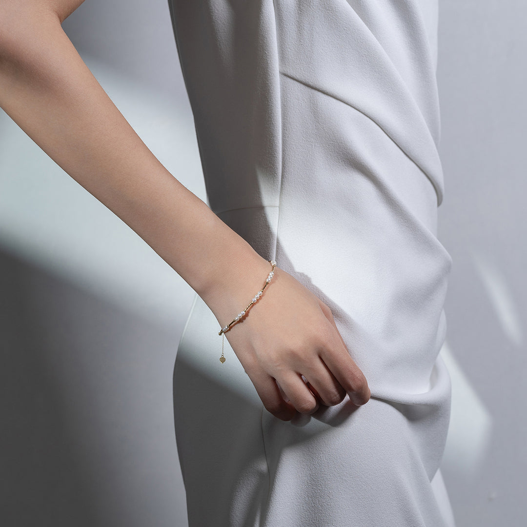 18K Solid Gold Freshwater Pearl Bracelet KB00023 - PEARLY LUSTRE