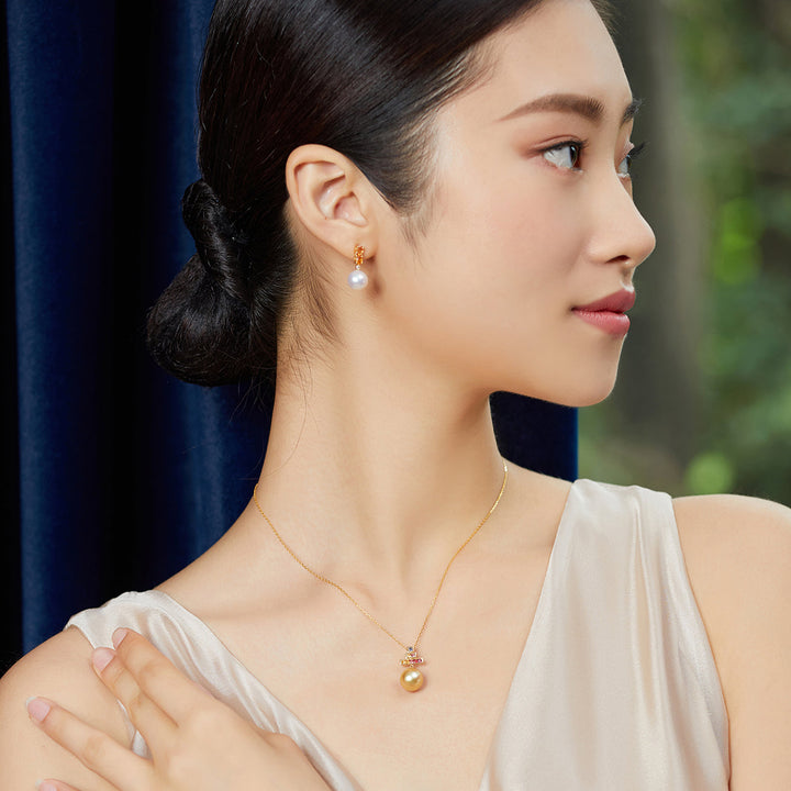 Orecchini di perle in oro massiccio 18 carati con pietra portafortuna KE00005