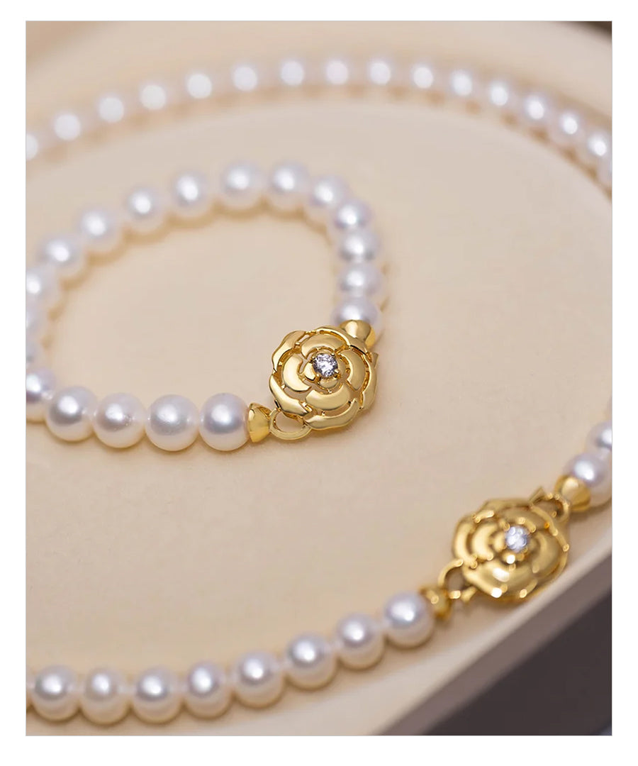 In caso di dubbio, opta per il fascino senza tempo dei classici! Eleva la tua eleganza con una collana e un bracciale di perle, caratterizzati da una sontuosa chiusura a forma di rosa in oro. Questi pezzi emanano lusso senza sforzo, creando un look raffinato. Abbinali a un semplice orecchino di perle e irradierai fascino alla tua cena aziendale e alla festa danzante. Semplice, ma sofisticato, questo ensemble completa qualsiasi abito, garantendo bellezza e grazia senza tempo in ogni occasione.