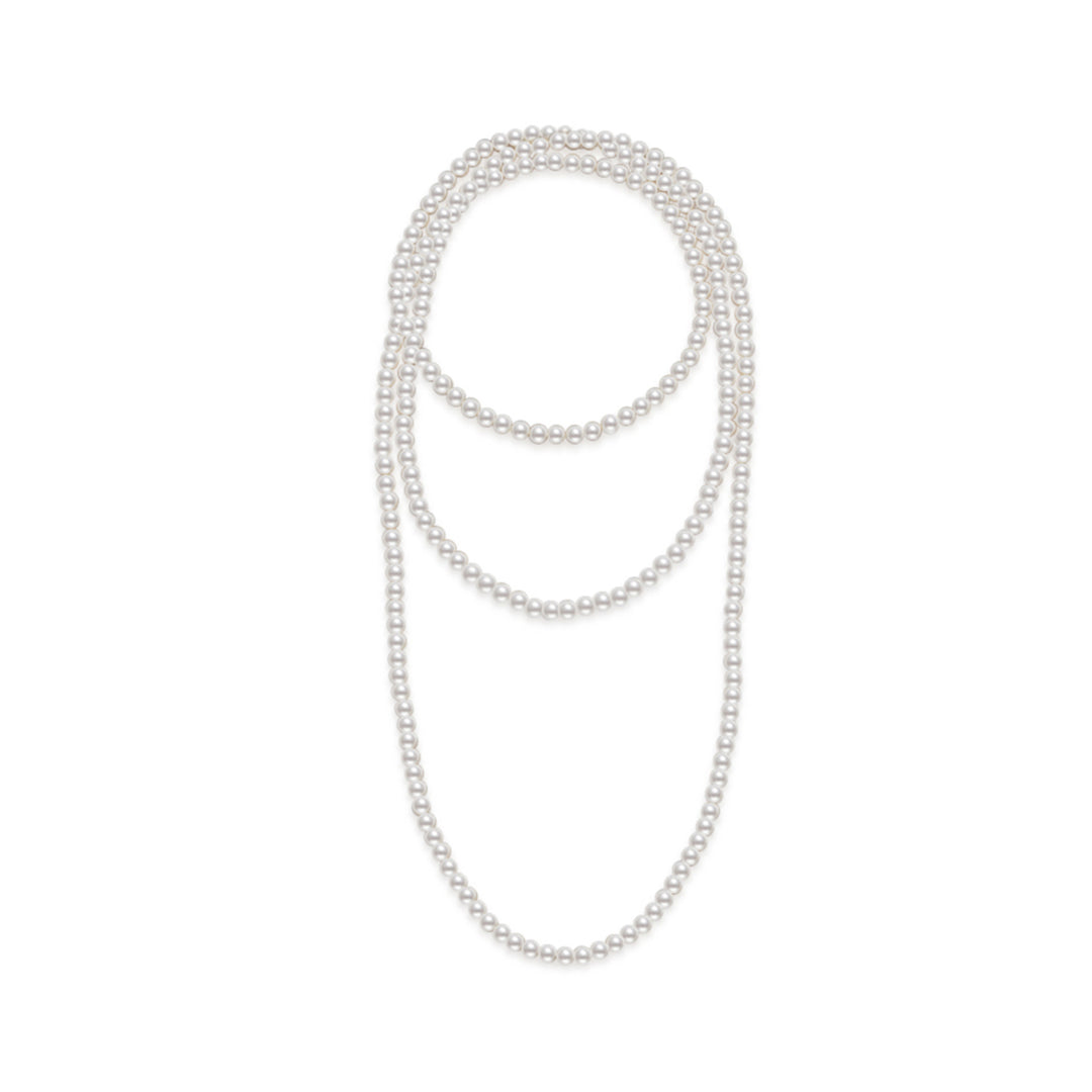 Abbraccia l'audacia e l'avventura con una versatile collana lunga di perle, perfetta per sperimentare diversi look serali. Indossala drappeggiata per un tocco classico o annodata per uno stile moderno e alla moda, questo accessorio offre infinite possibilità. Con questo pezzo distintivo, un semplice paio di orecchini completa il tuo ensemble degno di una passerella. Entra nella tua D&D aziendale con la grazia di una modella, incarnando senza sforzo l'essenza dell'alta moda e della sofisticazione audace.