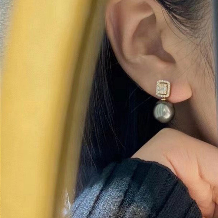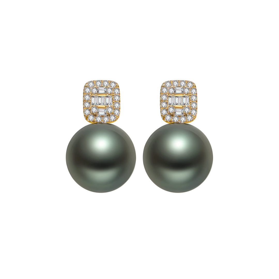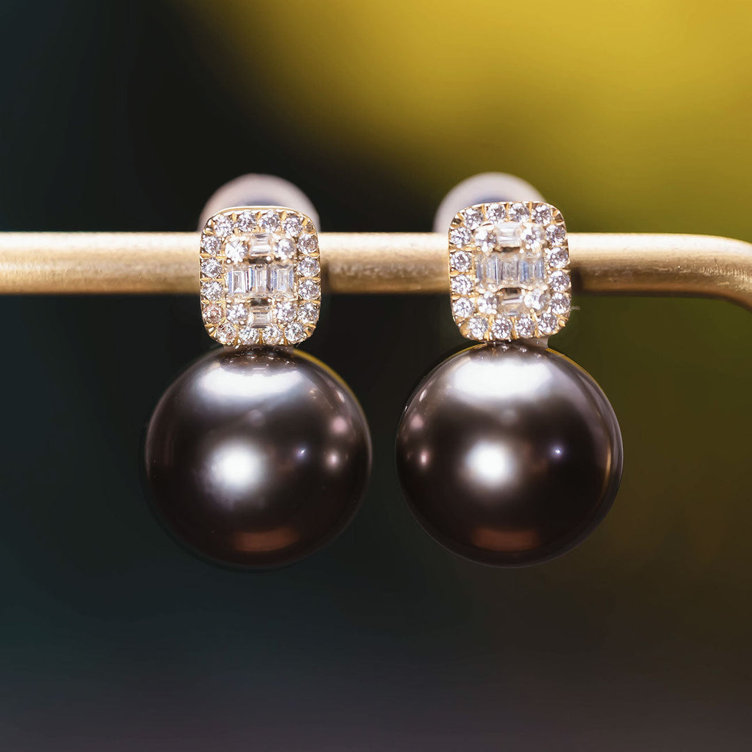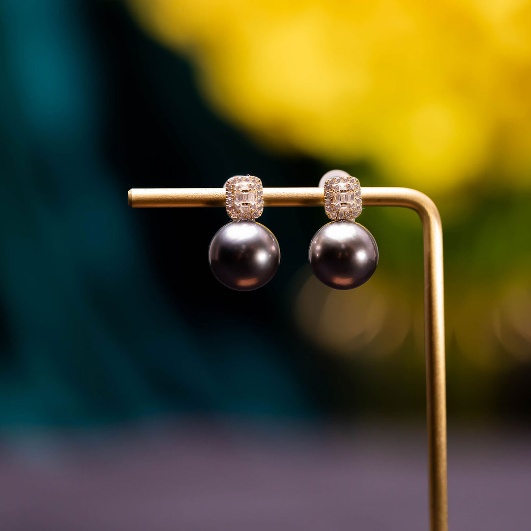 18K Solid Gold Tahitian Pearl Earrings KE00028 - PEARLY LUSTRE