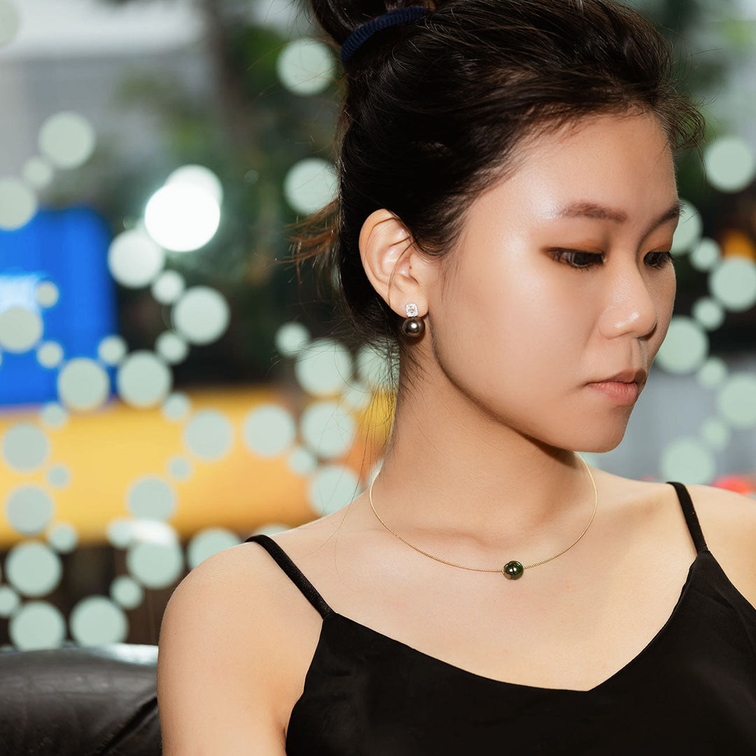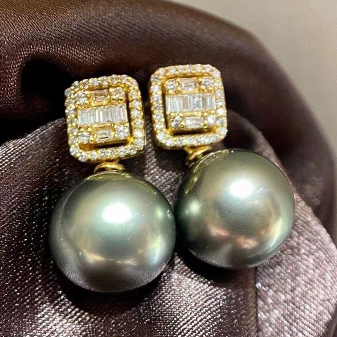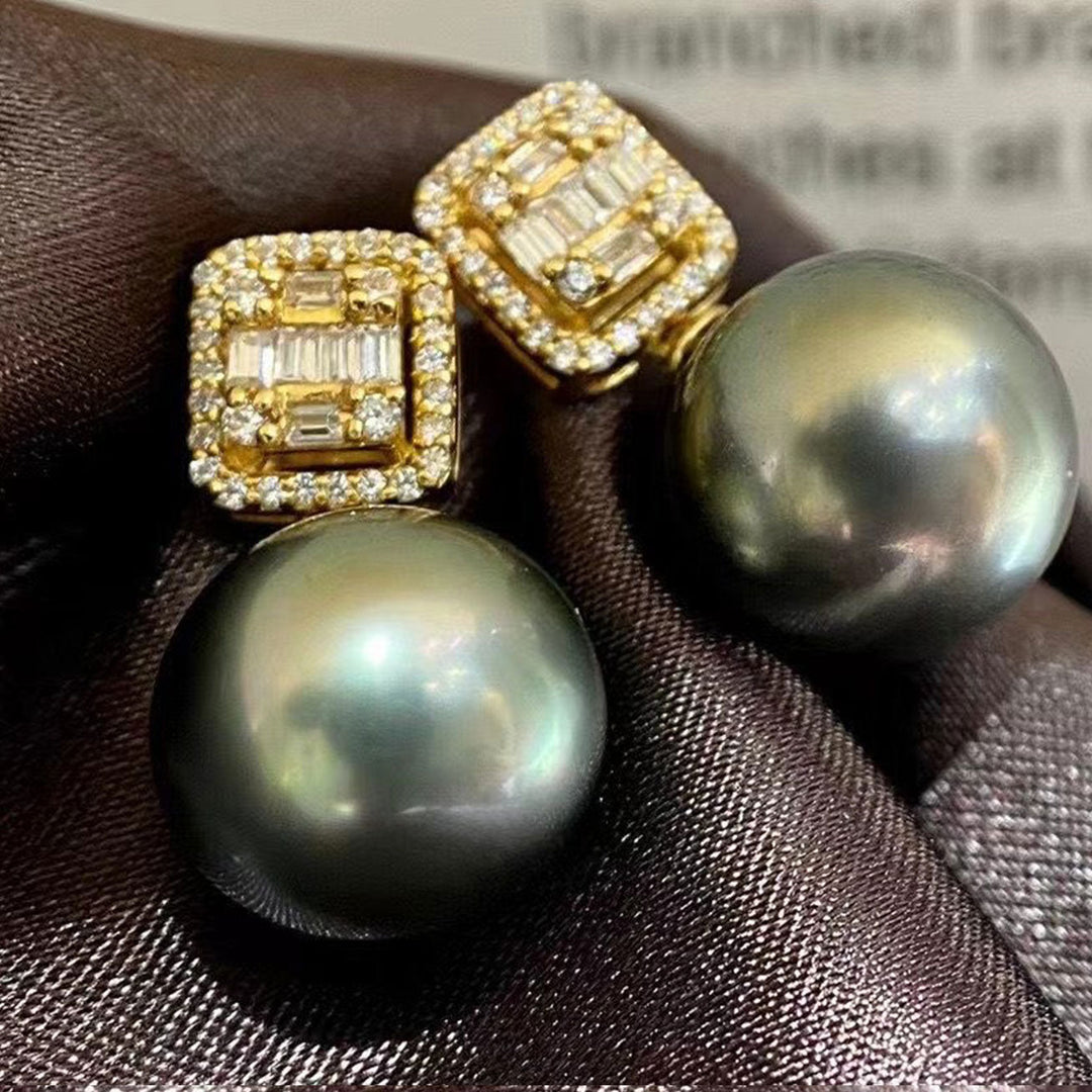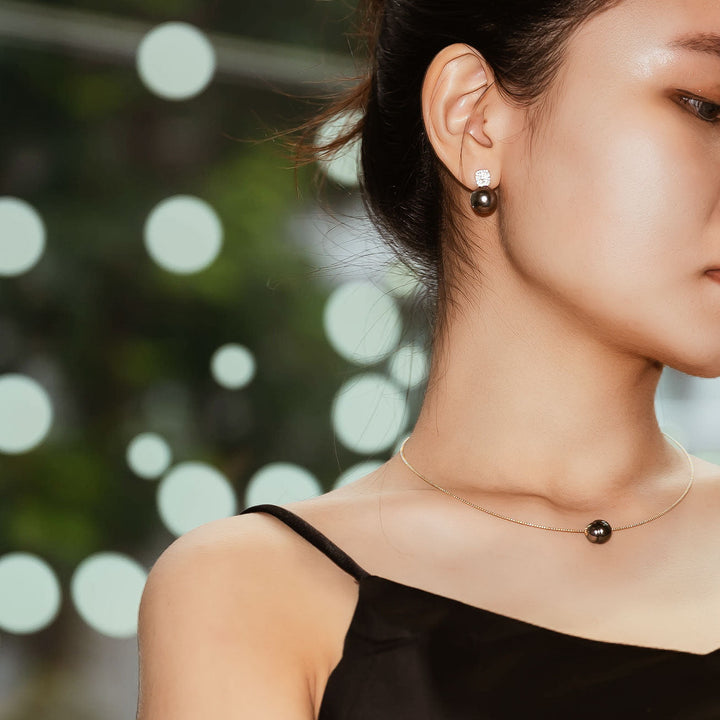 18K Solid Gold Tahitian Pearl Earrings KE00028 - PEARLY LUSTRE