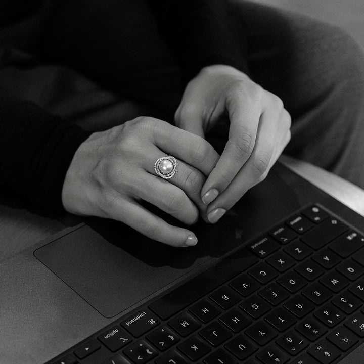 Una dichiarazione senza tempo di eleganza e lusso, questo anello con perla è progettato con la perla più brillante per farti risaltare tra la folla. Ogni dettaglio è realizzato con cura per garantire classe e raffinatezza. Concediti il ​​lusso con questo anello con perla adesso.
