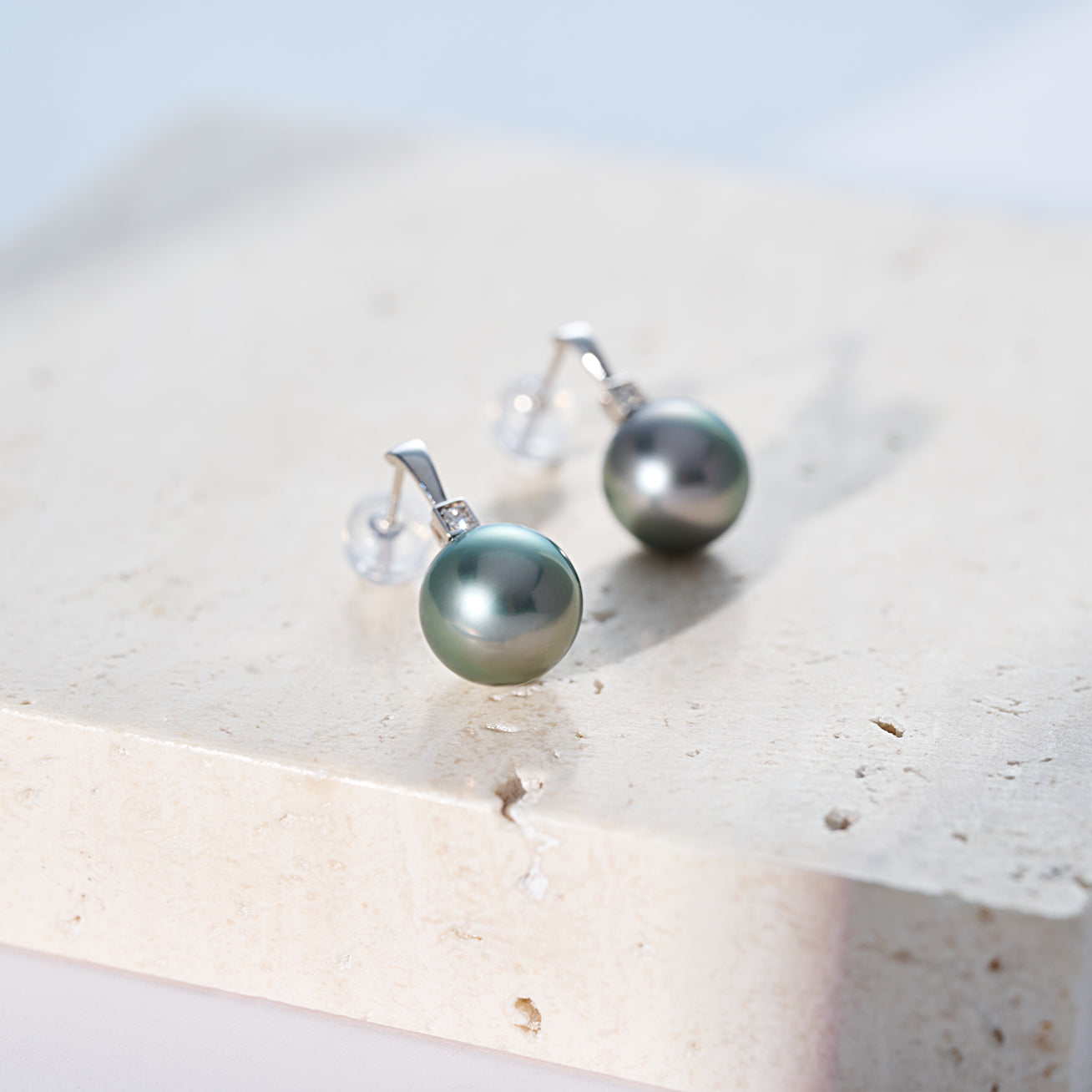 Orecchini con perla tahitiana, diamante e oro massiccio 18K KE00297