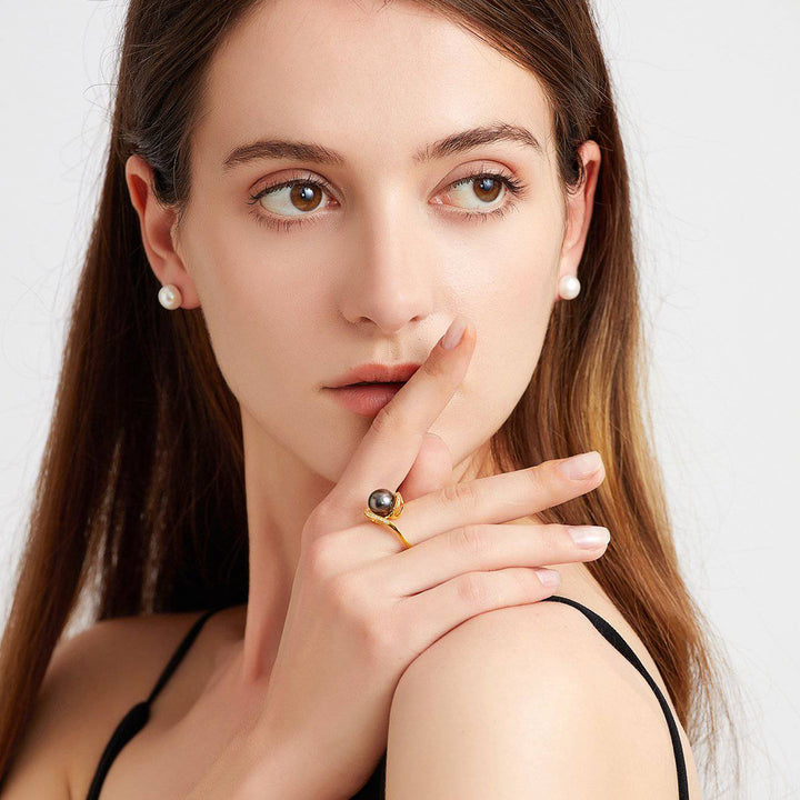 Elegant Tahitian Saltwater Pearl Ring WR00005 - PEARLY LUSTRE