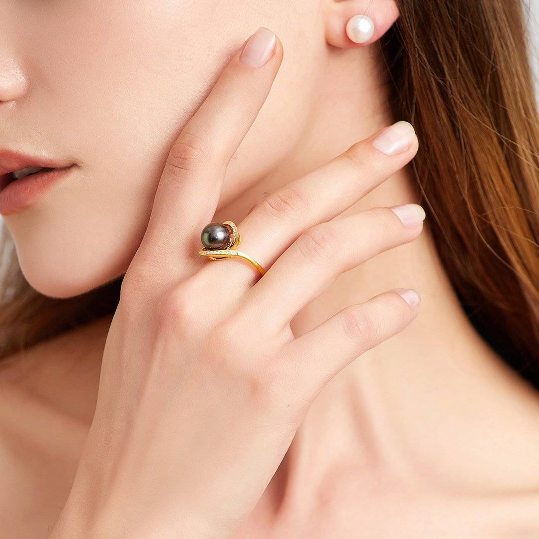 La bellezza e lo stile si uniscono in questo elegante anello di perle tahitiano.