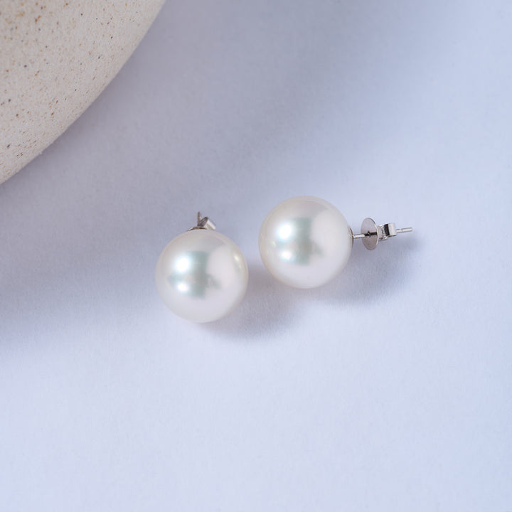 18K Gold Top Lustre Australian White South Sea Pearl Stud Earrings KE00140 - PEARLY LUSTRE