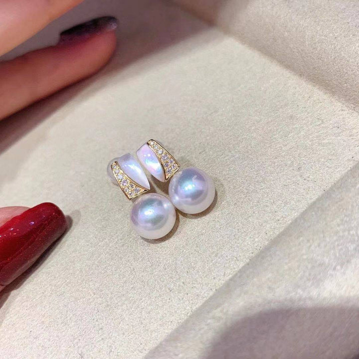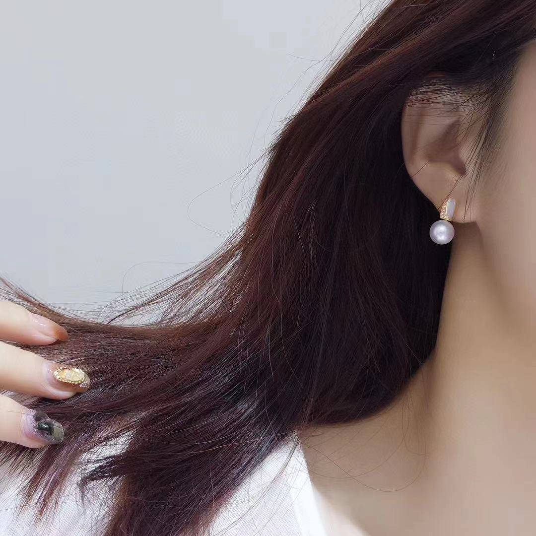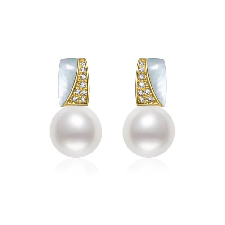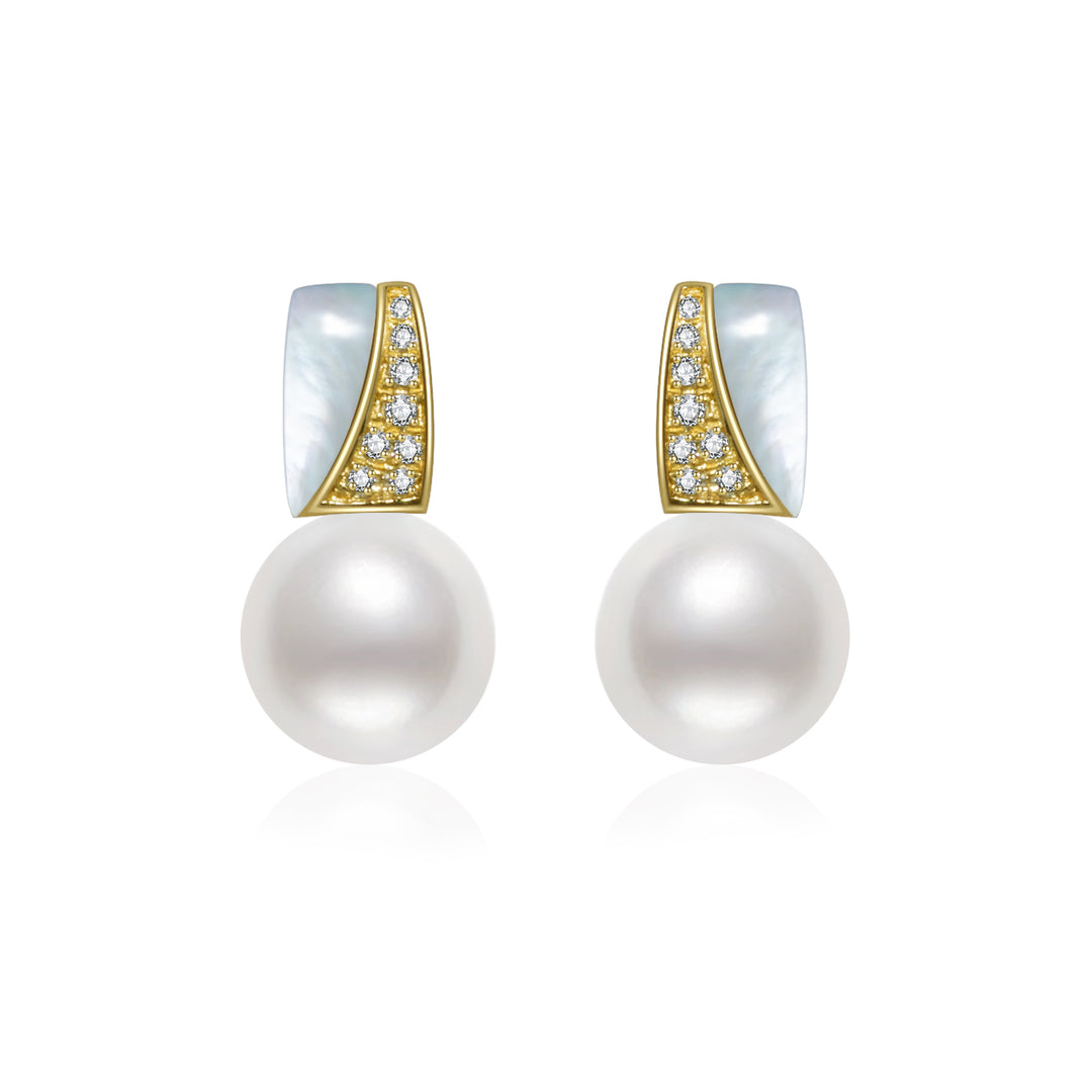 18K Solid Gold Freshwater Pearl Earrings KE00043 - PEARLY LUSTRE
