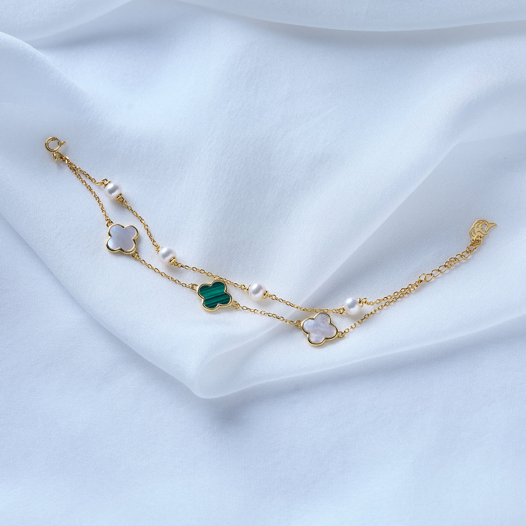 Bracciale di perle alla moda, splendida perla d'acqua dolce con catena in argento sterling placcata oro giallo. Delicato, elegante e piuttosto magnifico.
