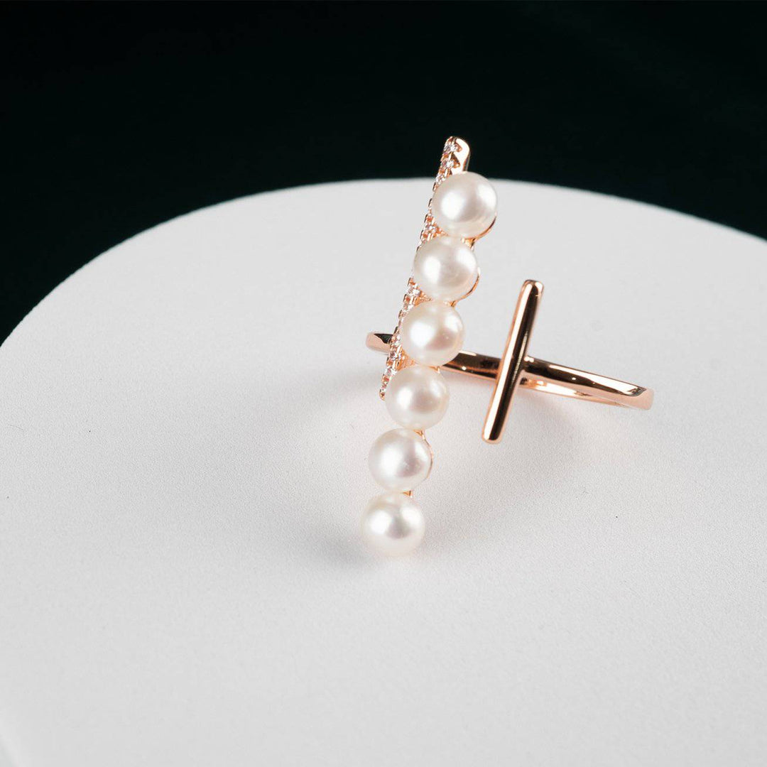 Un Anello di Perle che è unico nel design, classico nello stile, individuale nella creatività. Da indossare da giovani donne belle e alla moda per un'occasione elegante, ispirato allo stile di vita glamour.
