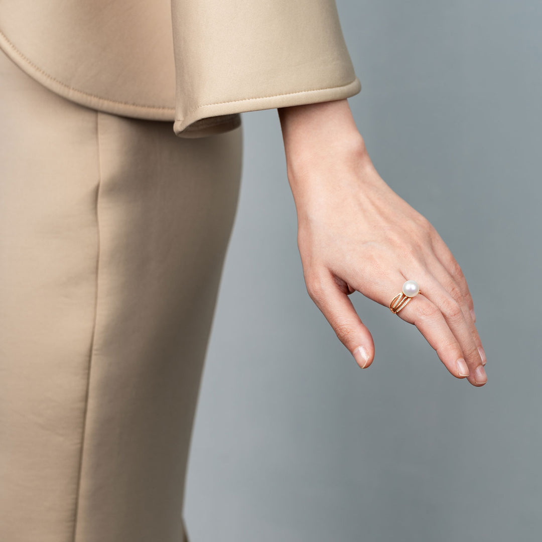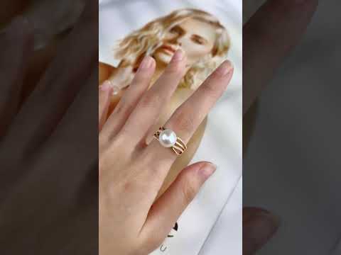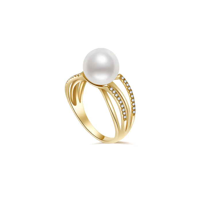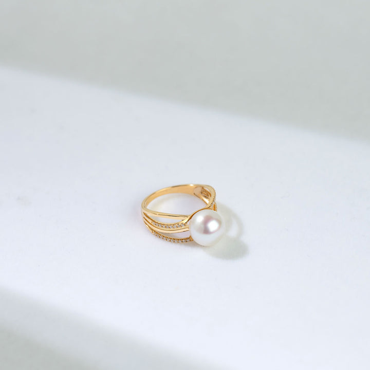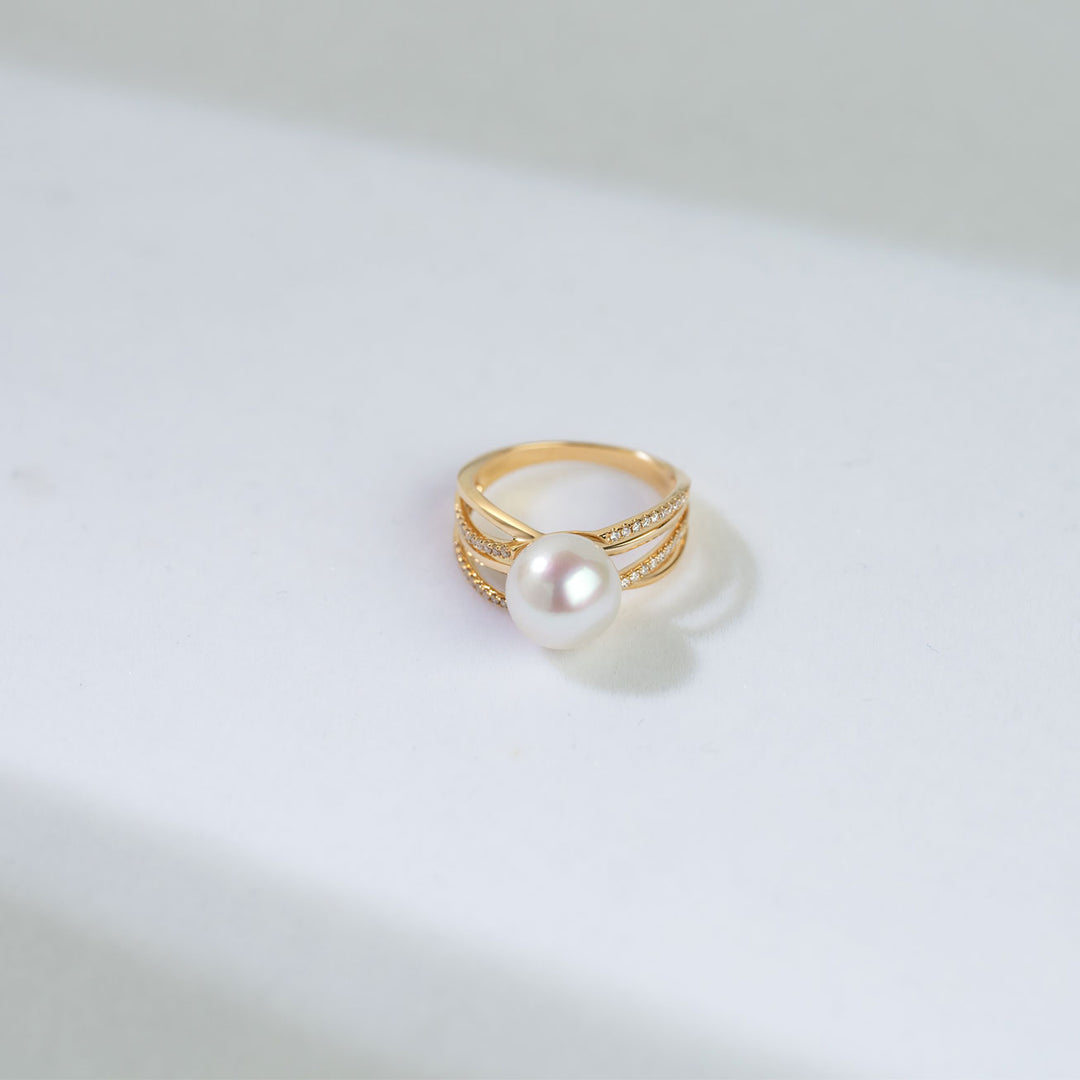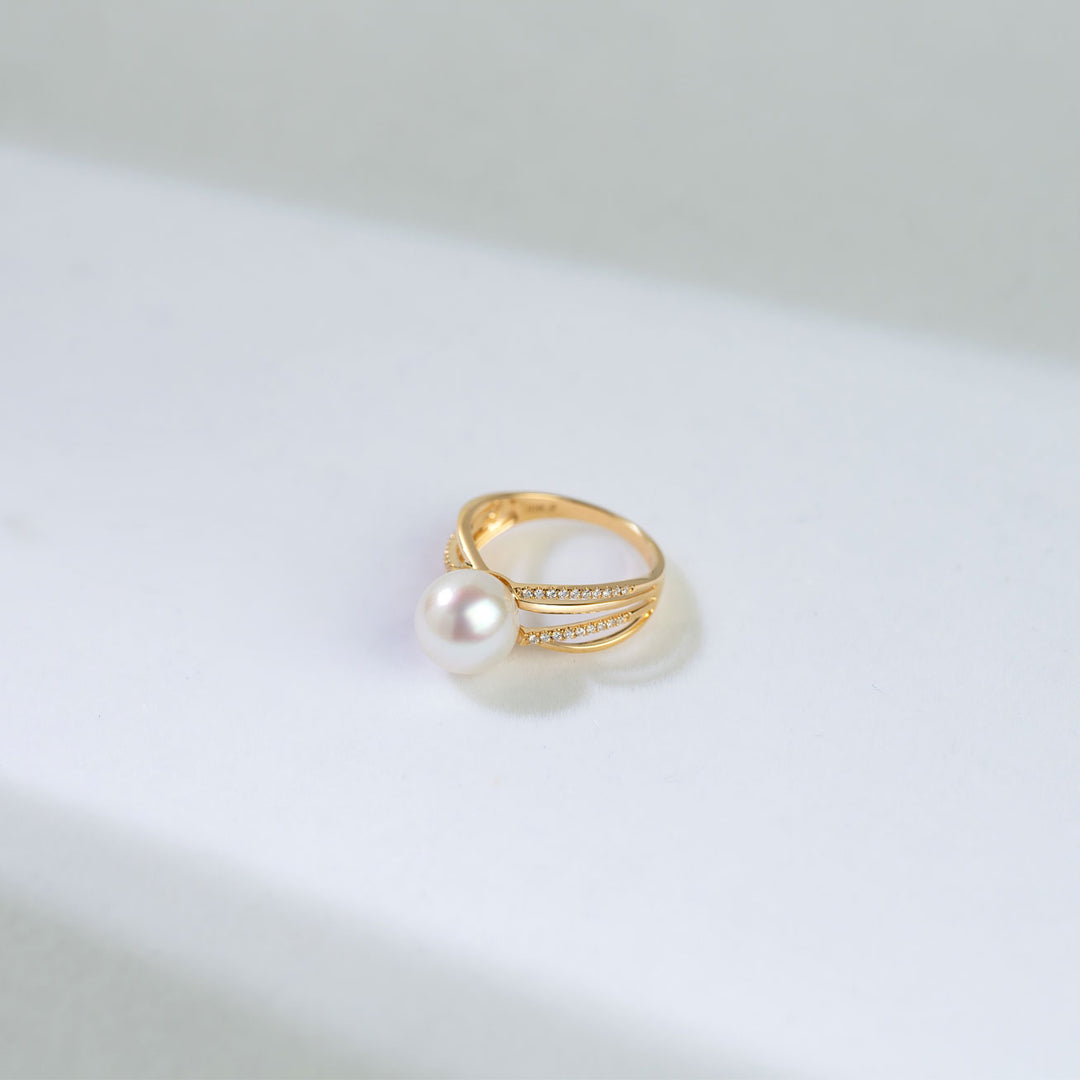 18K Diamond Freshwater Pearl Ring KR00051 | Si Dian Jin - PEARLY LUSTRE