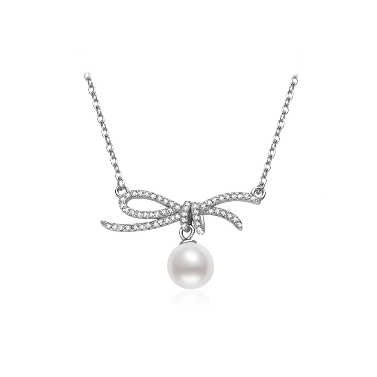 Questa collana di perle è un regalo magnifico per tutte le donne, una splendida perla d'acqua dolce con un bellissimo fiocco e nastro in zircone cubico. È una collana intricata, elegante e unica, perfetta per tutte le celebrazioni.