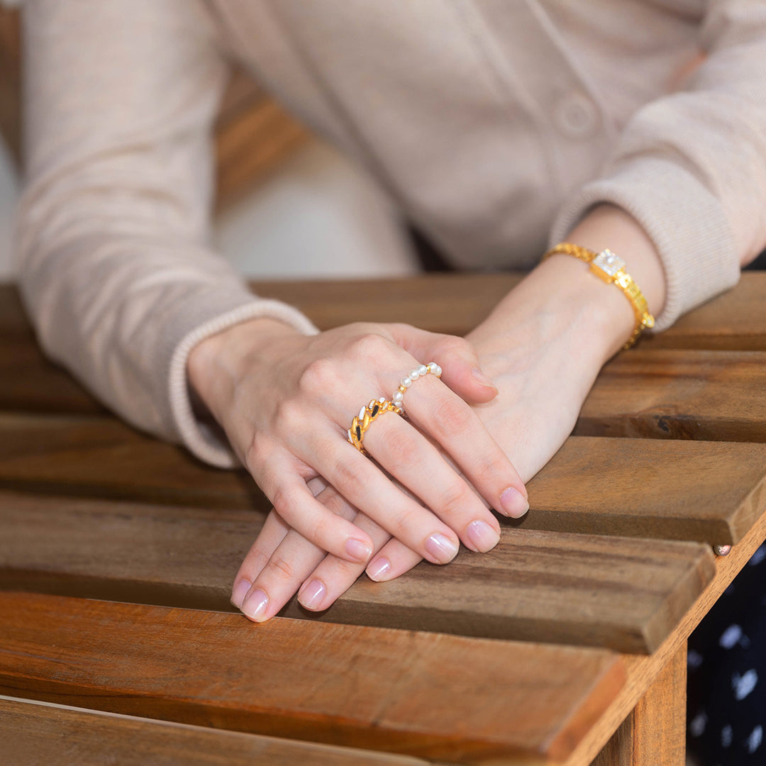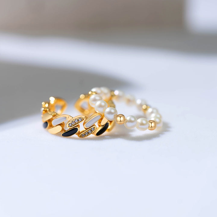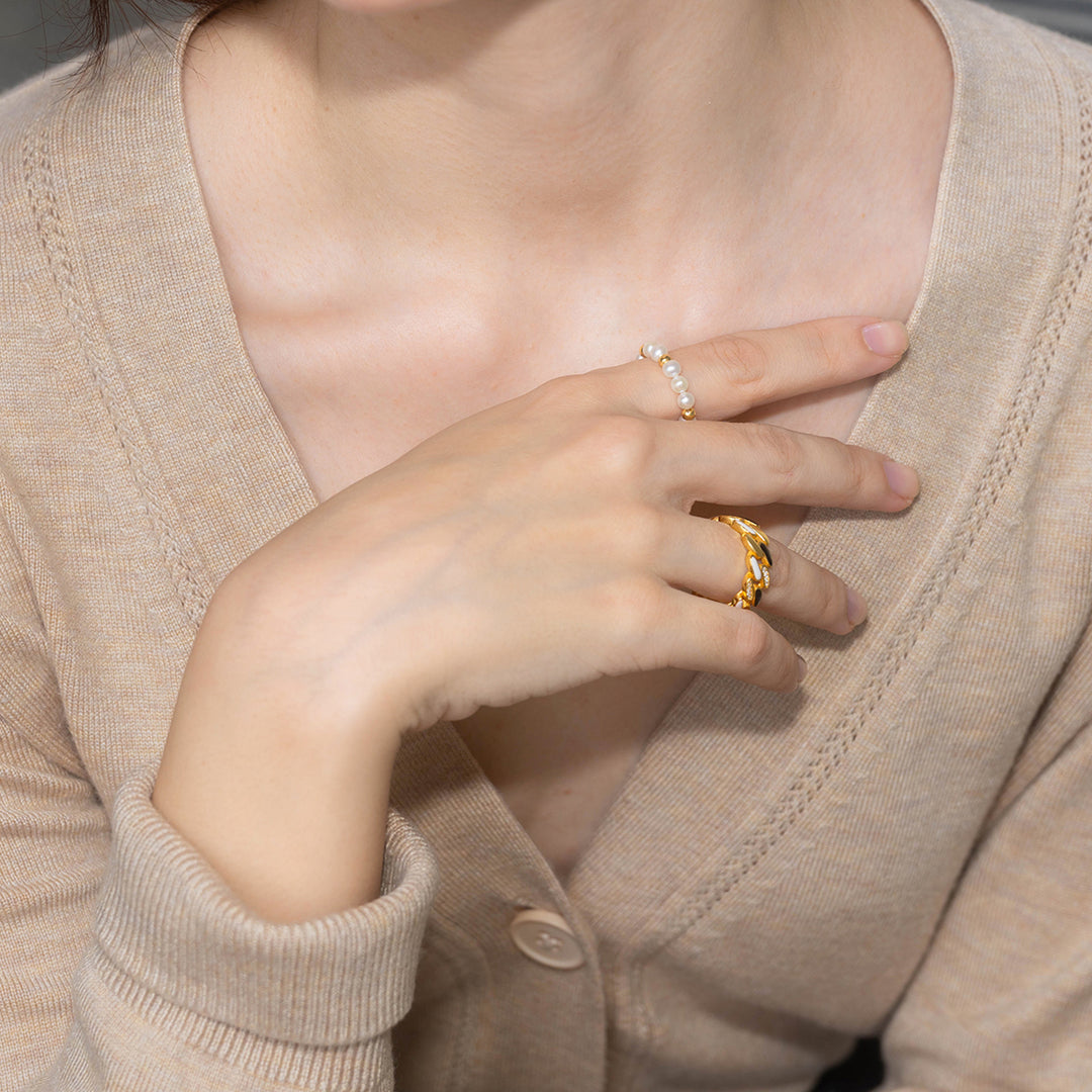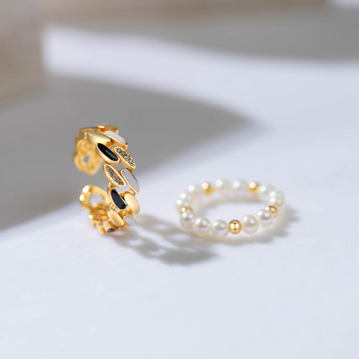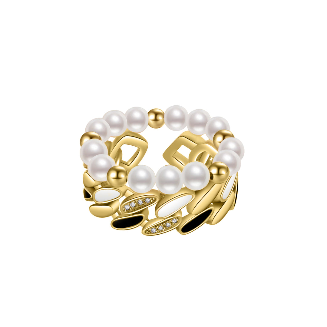 New Yorker Freshwater Pearl Duo Ring WR00150 | Mix&Match - PEARLY LUSTRE