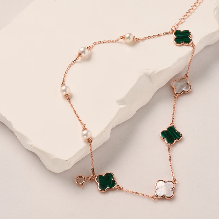 Le perle sono create naturalmente dall'ostrica o dalla cozza. Possono durare una vita (o più) se curate correttamente, senza perdere la loro lucentezza o intensità di colore. Dopo ogni utilizzo, usa il panno per lucidare l'argento pearly lustre per pulire i tuoi gioielli con perle, poiché il sudore e l'olio corporeo della pelle sono acidi e possono influire sulla lucentezza dei gioielli con perle.