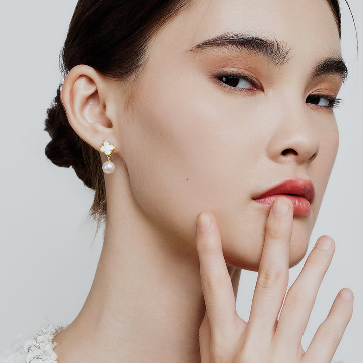 Elegant Freshwater Pearl Earrings WE00828 | MOTHER OF PEARL - PEARLY LUSTRE