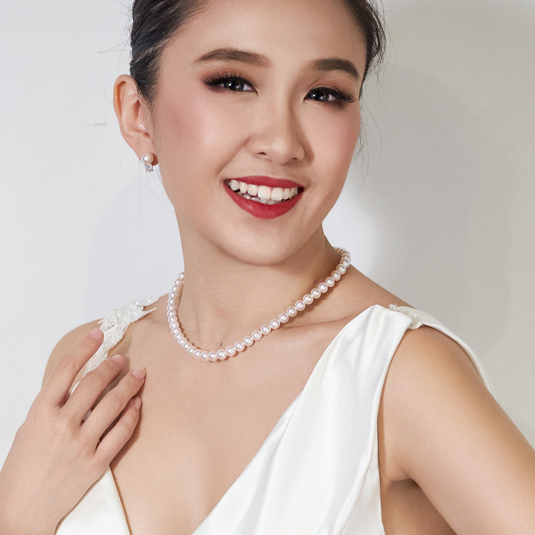 • Perla Akoya Hanadama da 8-8,5 mm, rotonda, bianca