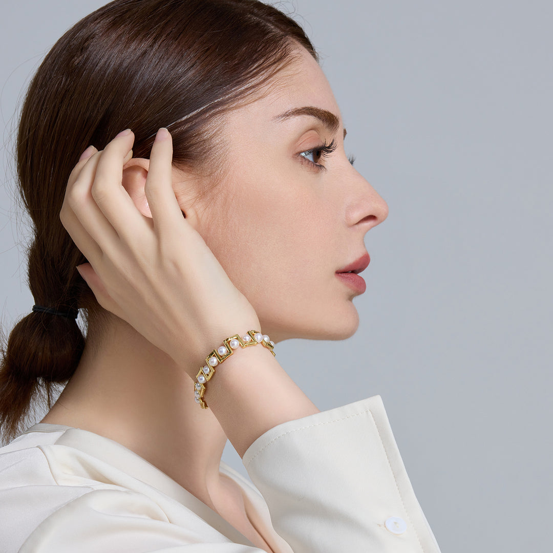Senti l'ispirazione chic e alla moda di questo bracciale di perle sportivo, progettato pensando alle connessioni. La sua semplicità lo rende perfetto per ogni occasione.