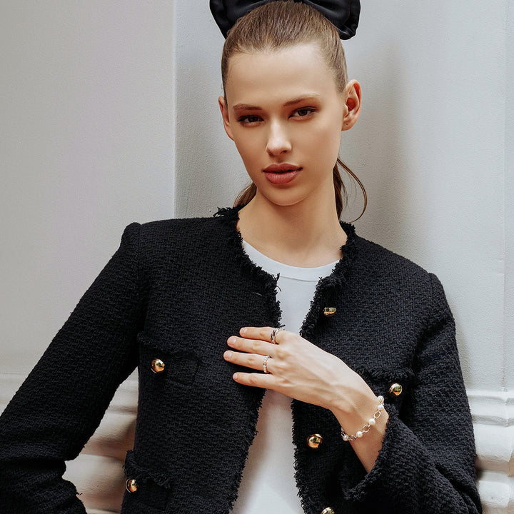 Per garantire una vestibilità perfetta, inserisci delicatamente il perno attraverso il foro più grande sul fermo posteriore. Allinealo con cura e spingi delicatamente—non serve forza! Maneggia questo gioiello raffinato con cura per una bellezza quotidiana a 360 gradi.