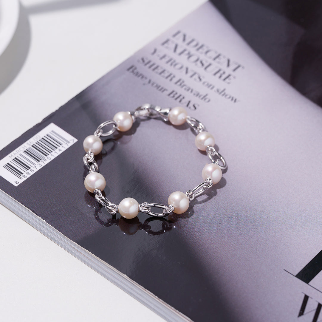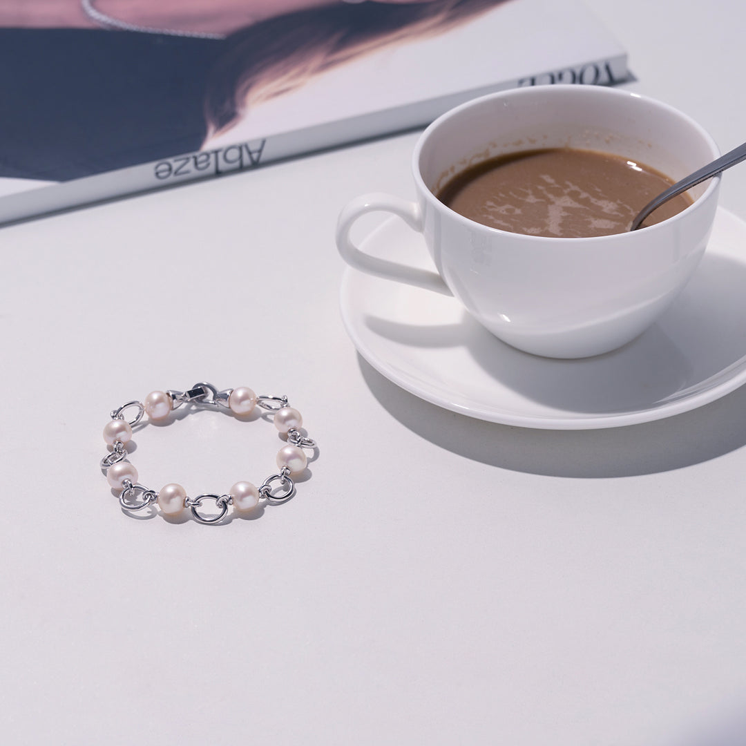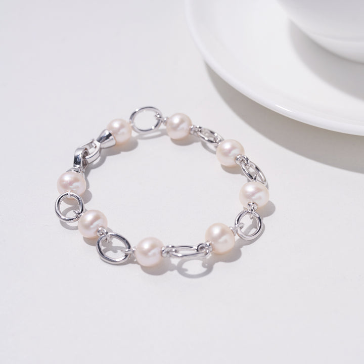 Aggiungi un tocco di moda a ogni occasione con questo splendido bracciale, caratterizzato da perle da 7,5-8,5 mm perfettamente disposte in un elegante design intermittente. Realizzato con perle lucenti, sarà il regalo perfetto per quella persona speciale nella tua vita.