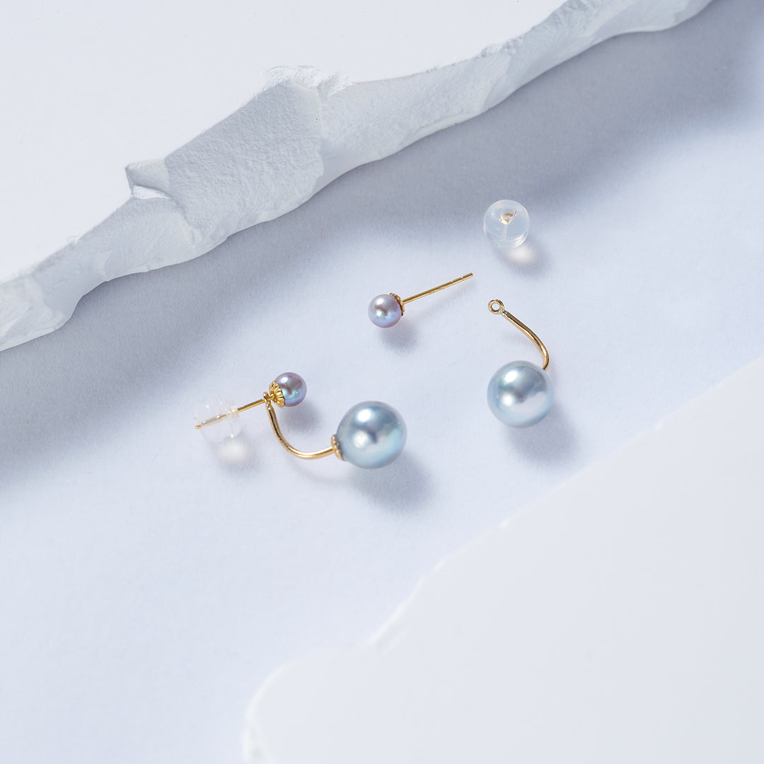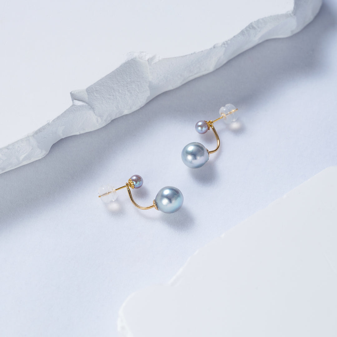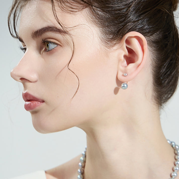 18K Gold Silver Blue Akoya Pearl Earrings KE00158 - PEARLY LUSTRE