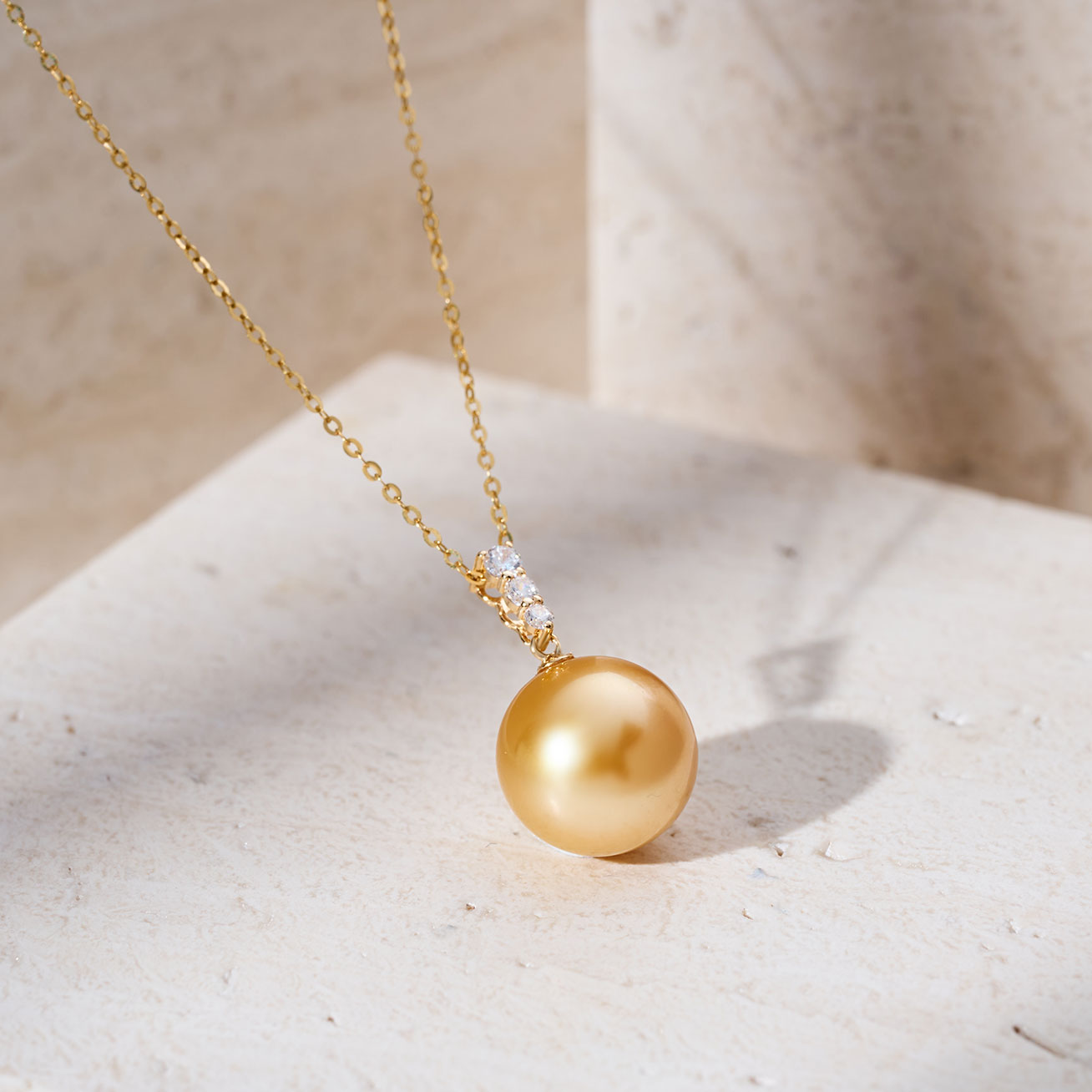 • 13-14 mm South Sea Golden Pearl、ラウンドシェイプ、トップグレーディング