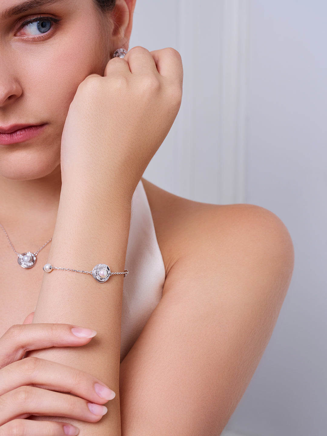 この上品な腕輪は若い少女にぴったりです。洗練された宝石のデザインが贅沢さを添え、どんな服装にも自然に調和し、彼女の装いに気品と時を超えた魅力を加えます。