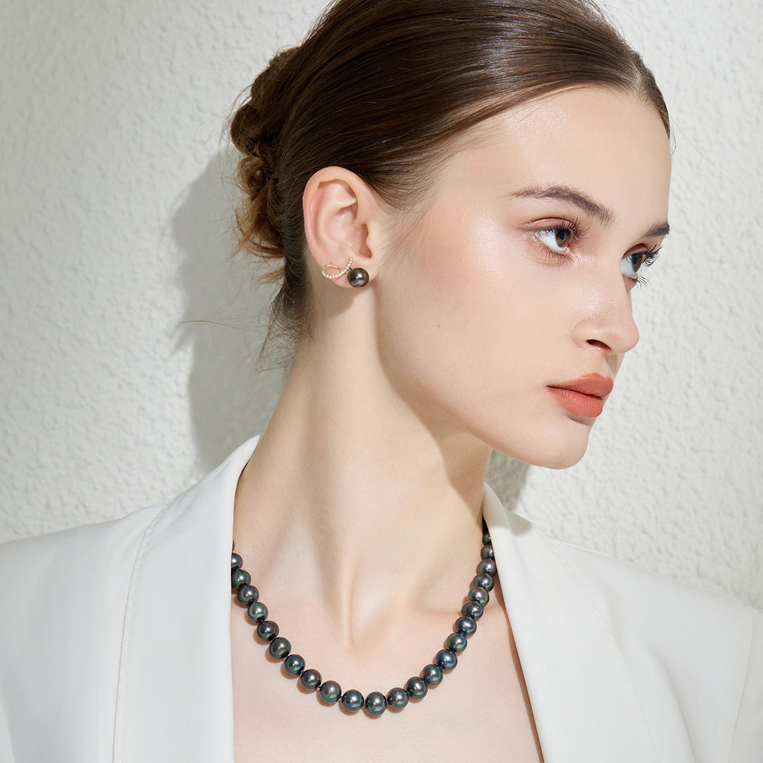 • 9-10 mm タヒチ真珠、ラウンド、ブラック