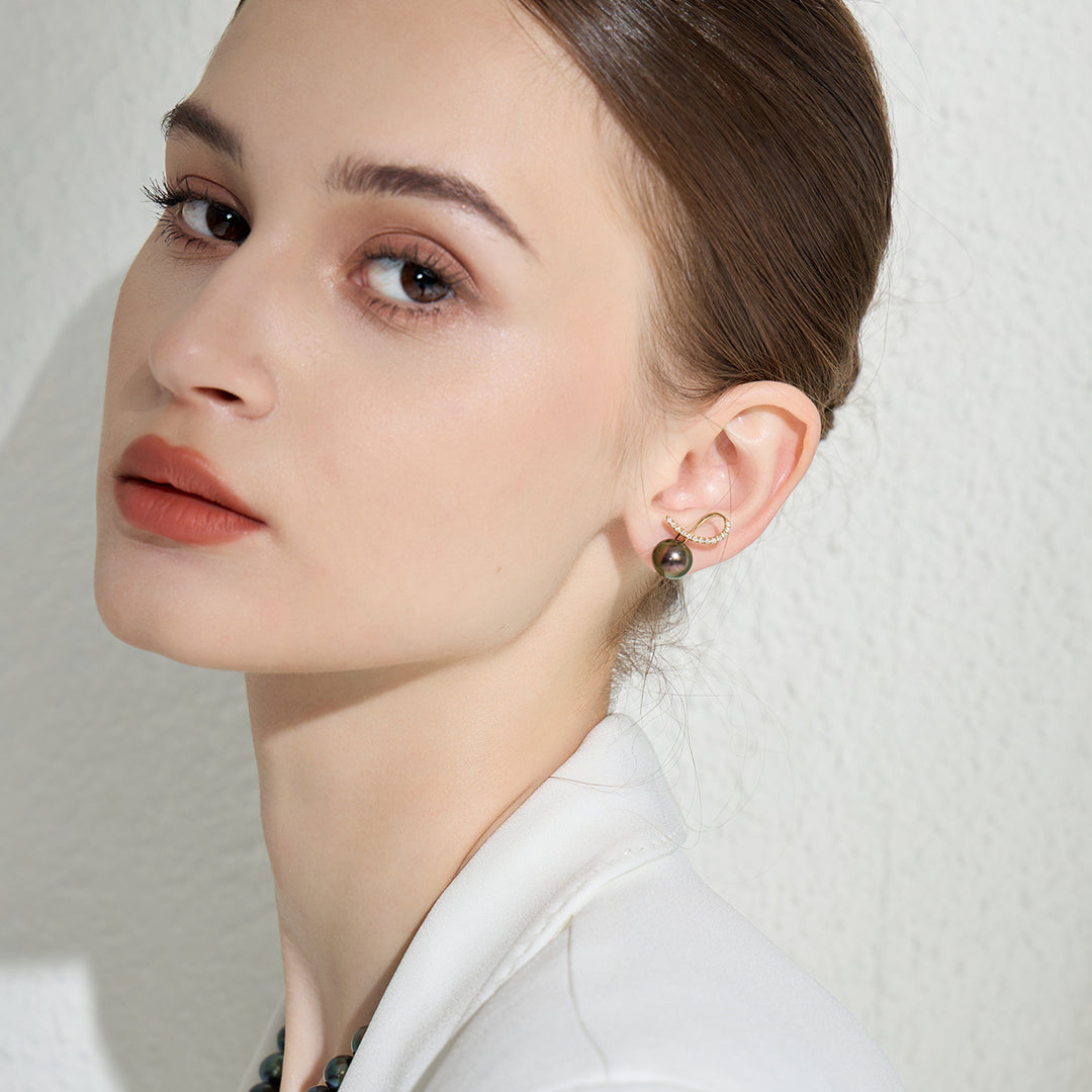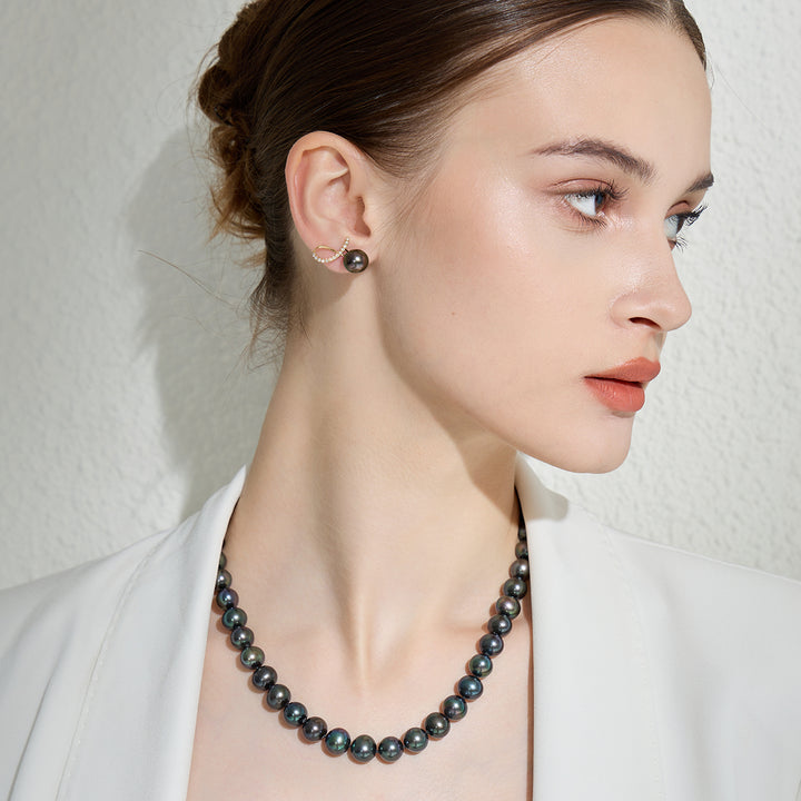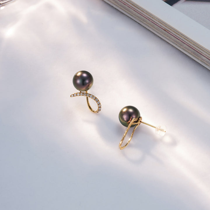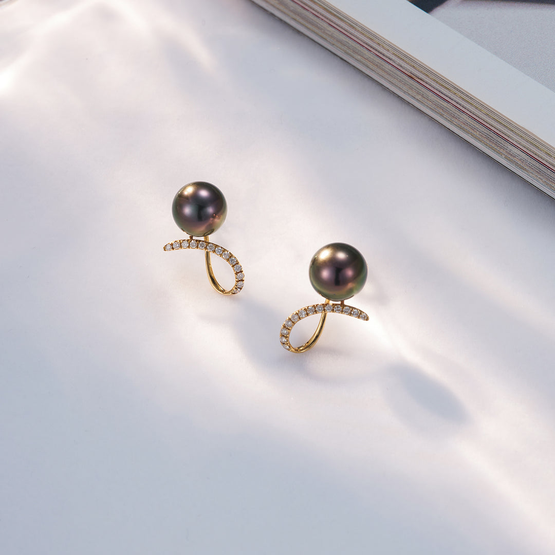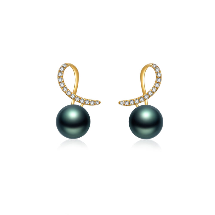 18K Gold Diamond Tahitian Pearl Earrings KE00133 - PEARLY LUSTRE