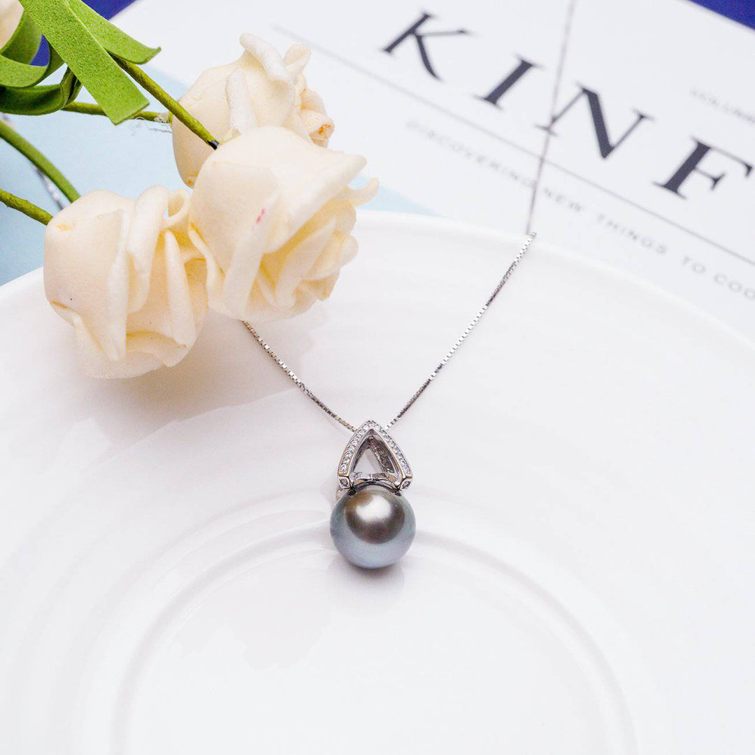 • 9 - 10 mm 塩水真珠, ラウンド, ブラックタヒチ