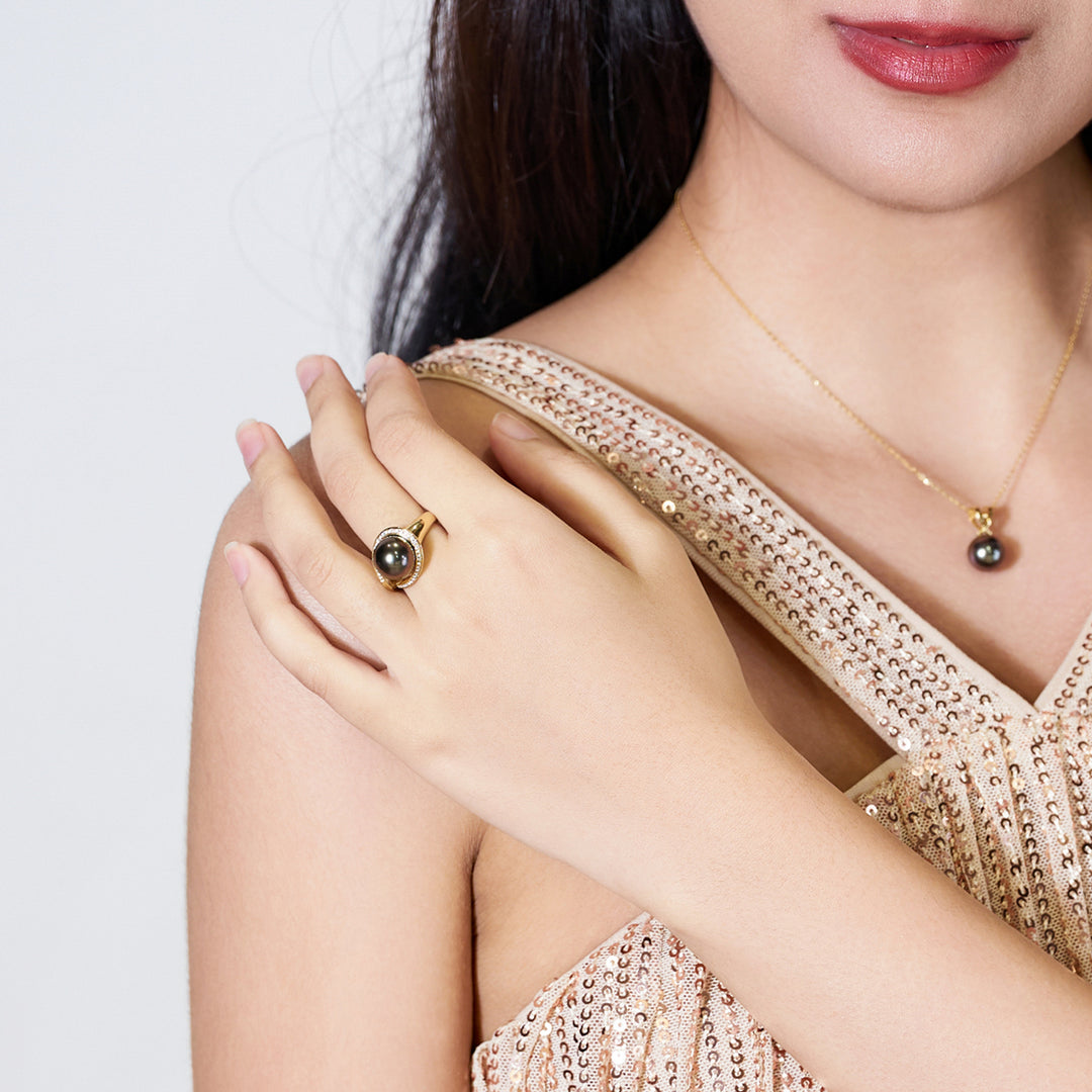 18K Solid Gold Tahitian Pearl Ring KR00071 - PEARLY LUSTRE