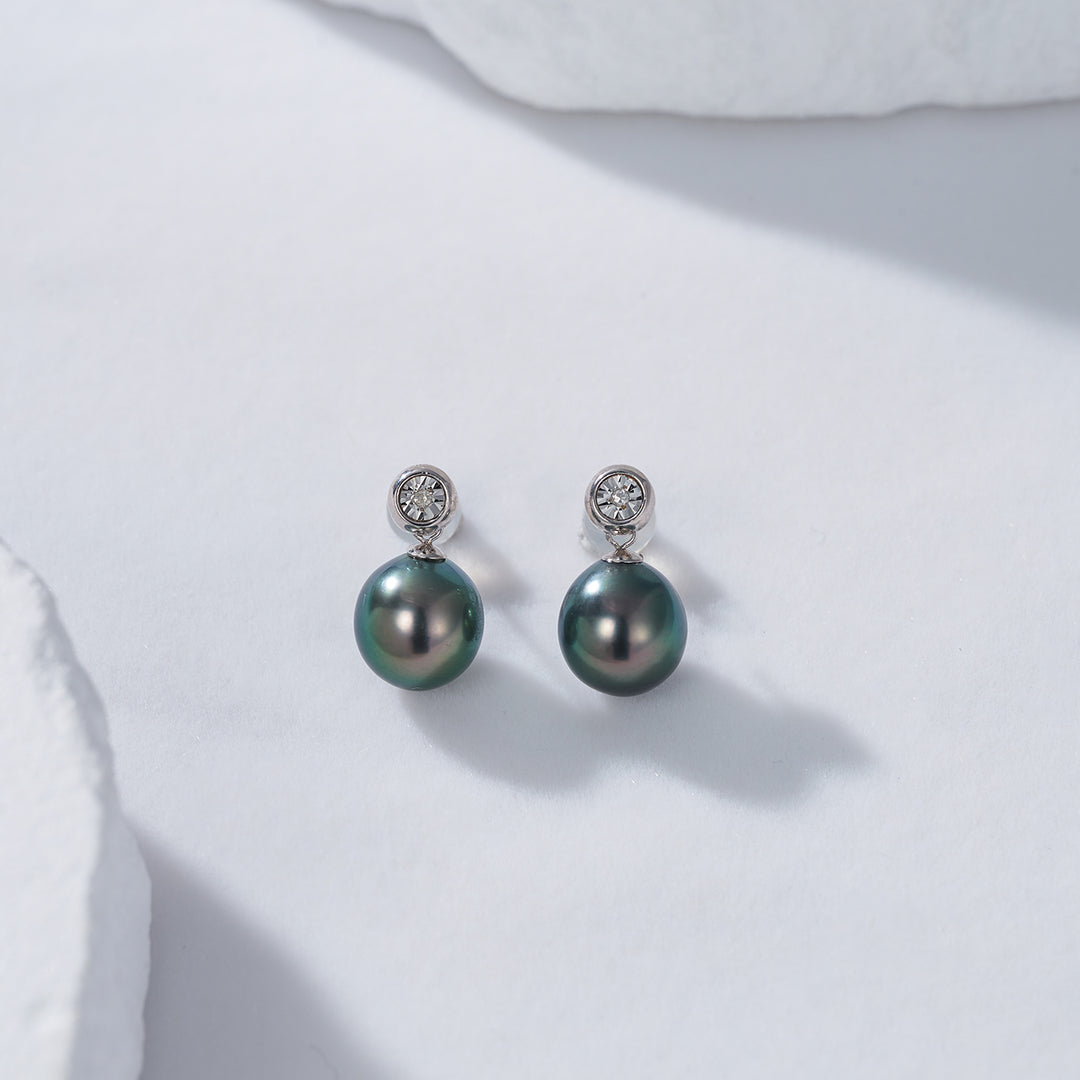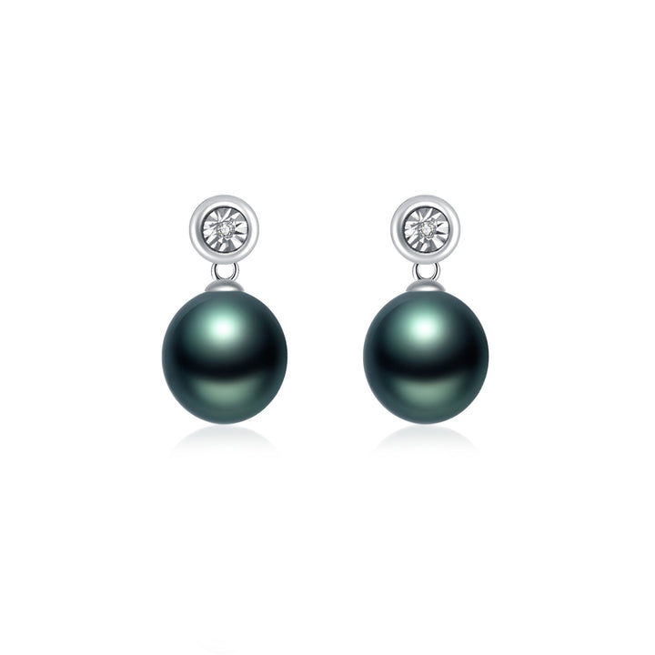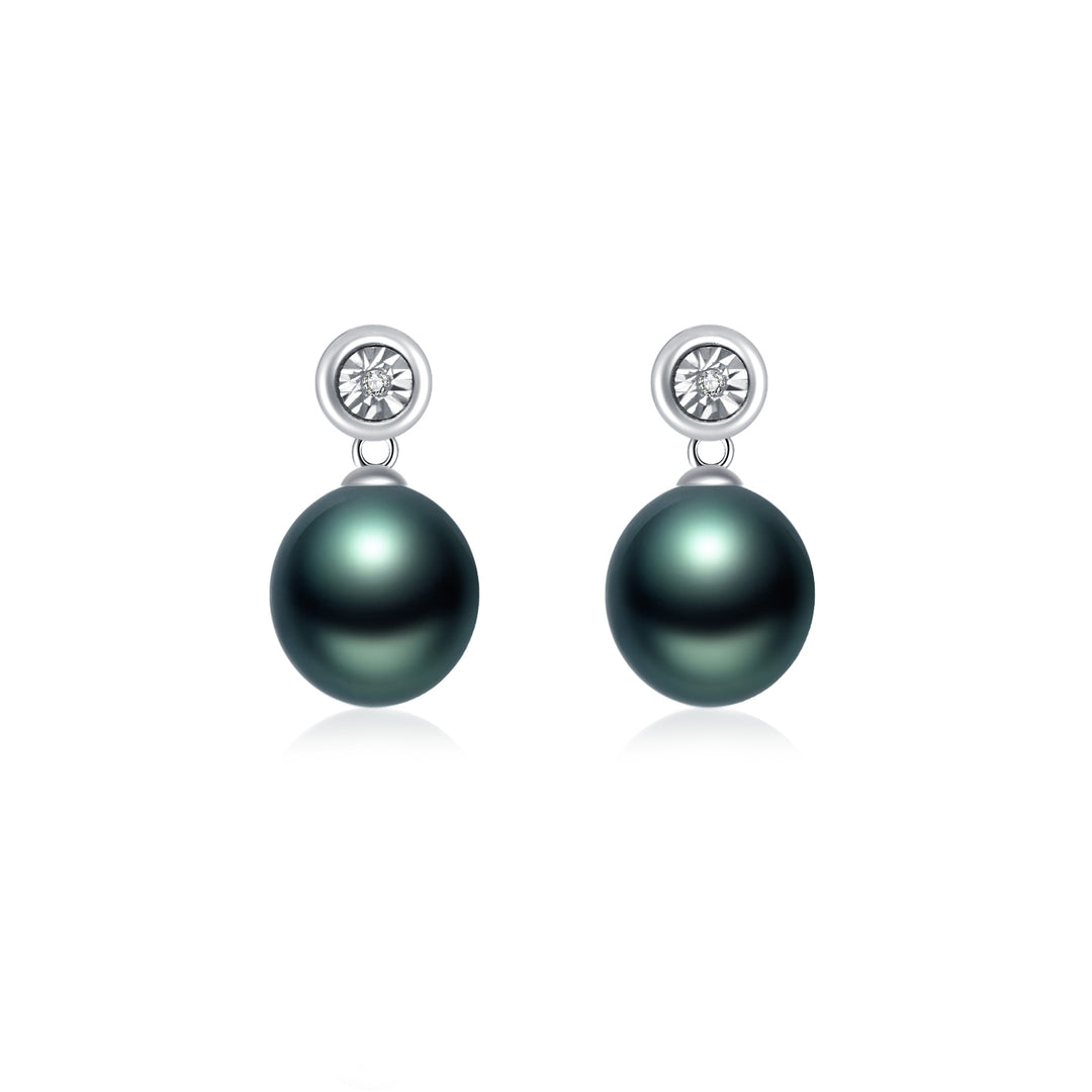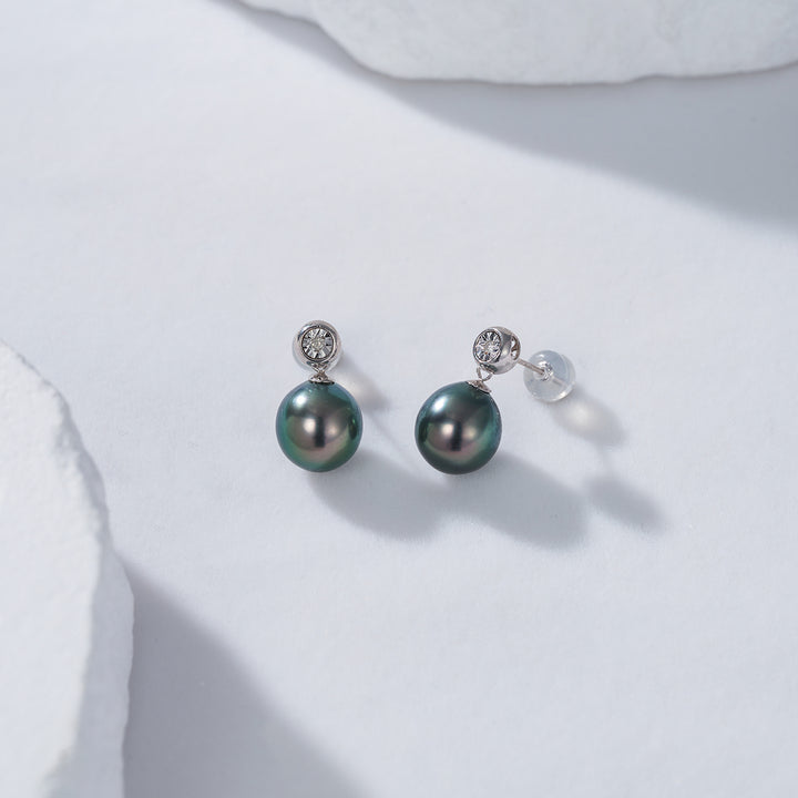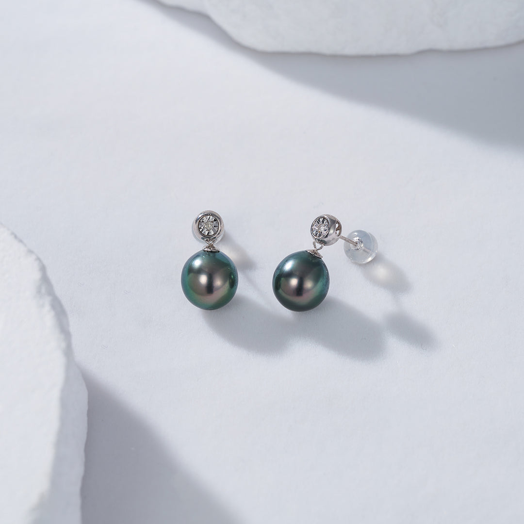 18K Solid Gold Diamond Tahitian Pearl Earrings KE00093 - PEARLY LUSTRE