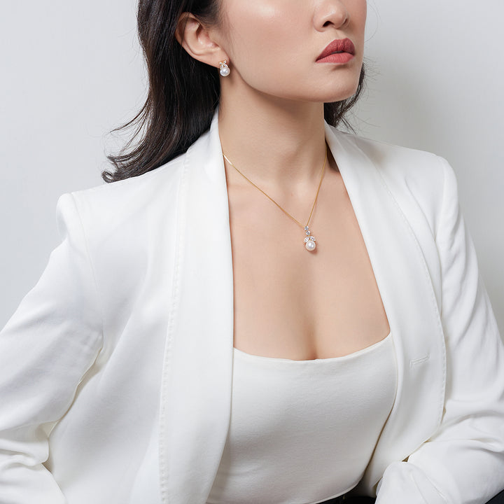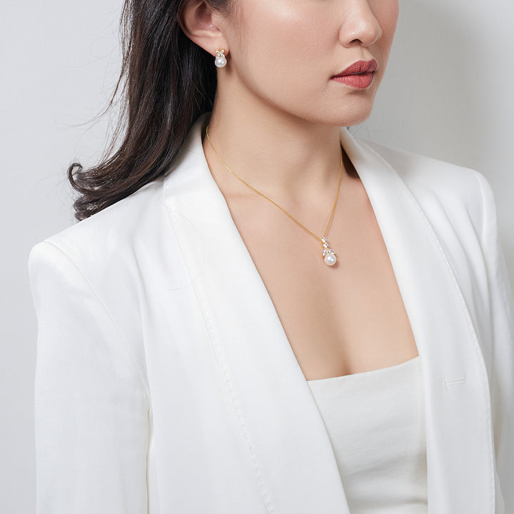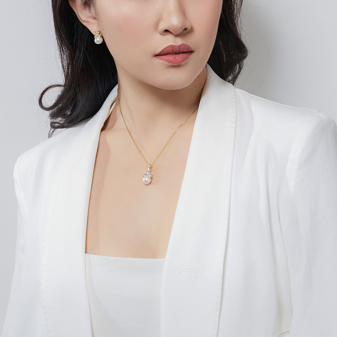 このパールネックレスは、スタイリッシュさでは最高です!デュオの大きさのキュービックジルコニアと、単一の大きさの淡水パールがドロップペンダントにセットされており、クラシックで魅力的です。洗練された女性のために。